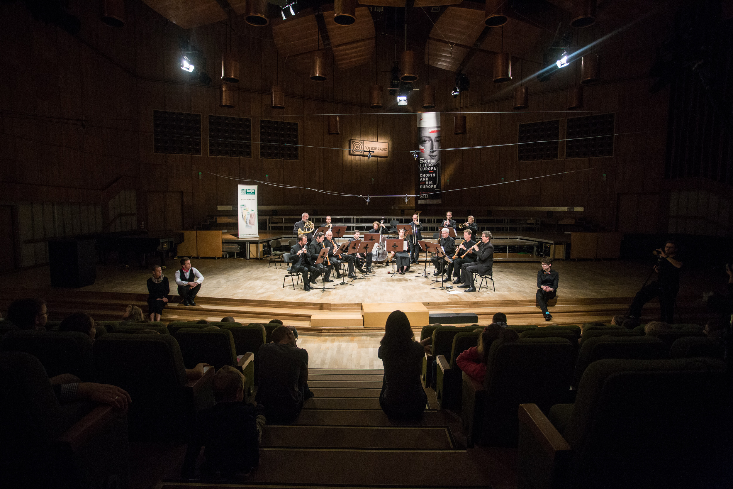 Warsztaty dla dzieci z udziałem Piotra Ligienzy i Amphion Wind Ensemble w Studiu Koncertowym Polskiego Radia im. Witolda Lutosławskiego podczas XII Międzynarodowego Festiwalu Muzycznego „Chopin i Jego Europa” [10]