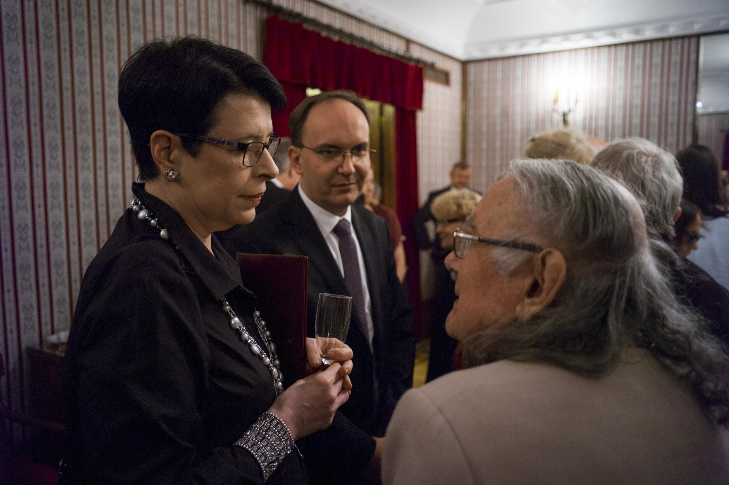 Przerwa po I części koncertu symfonicznego, Beatrice Rana otrzymuje gratulacje, rozmowy kuluarowe w Filharmonii Narodowej podczas XII Międzynarodowego Festiwalu Muzycznego „Chopin i Jego Europa” [5]