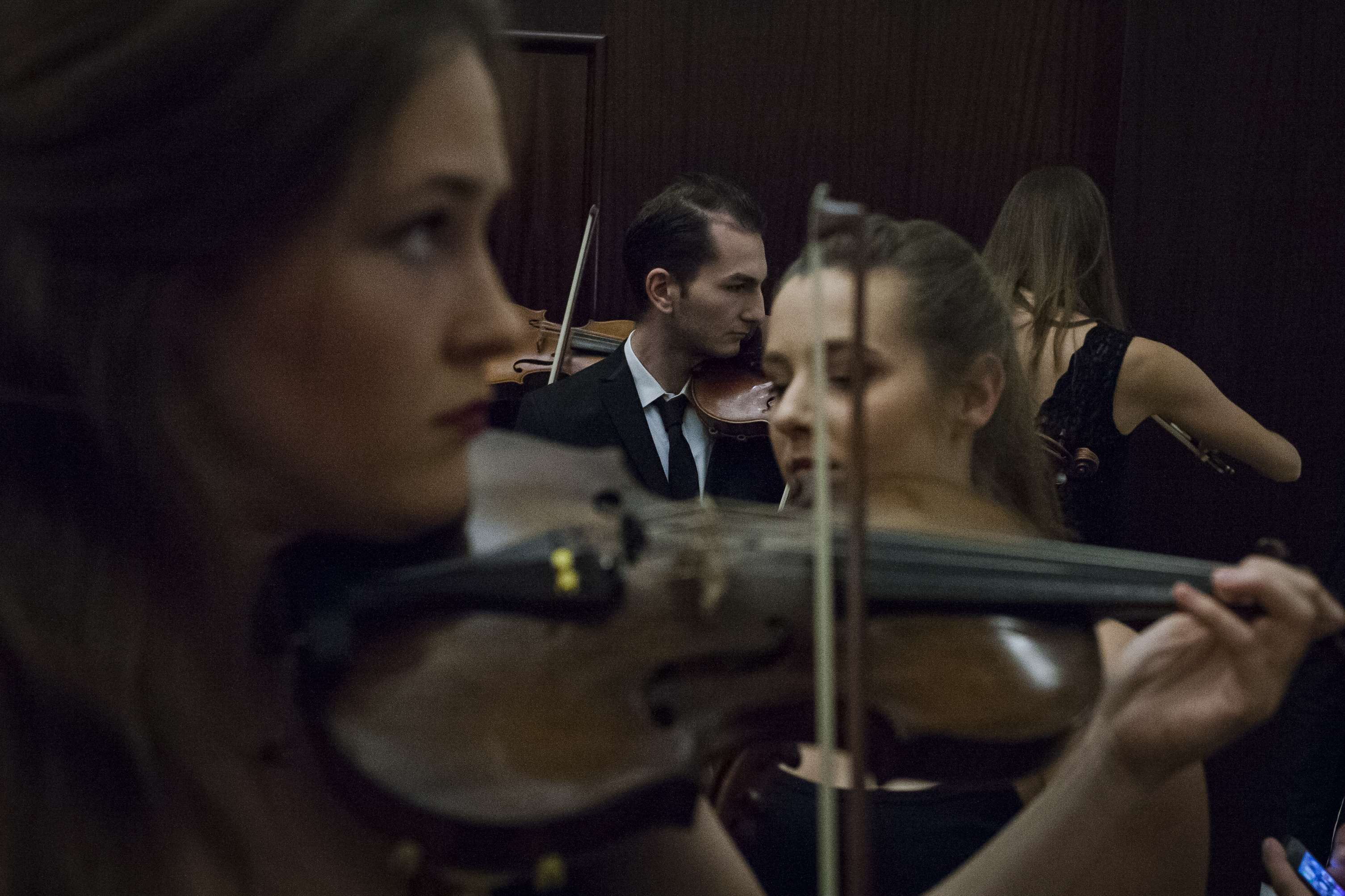 Muzycy oraz publiczność przed rozpoczęciem koncertu symfonicznego w Filharmonii Narodowej podczas XIII Międzynarodowego Festiwalu Muzycznego „Chopin i Jego Europa” [6]
