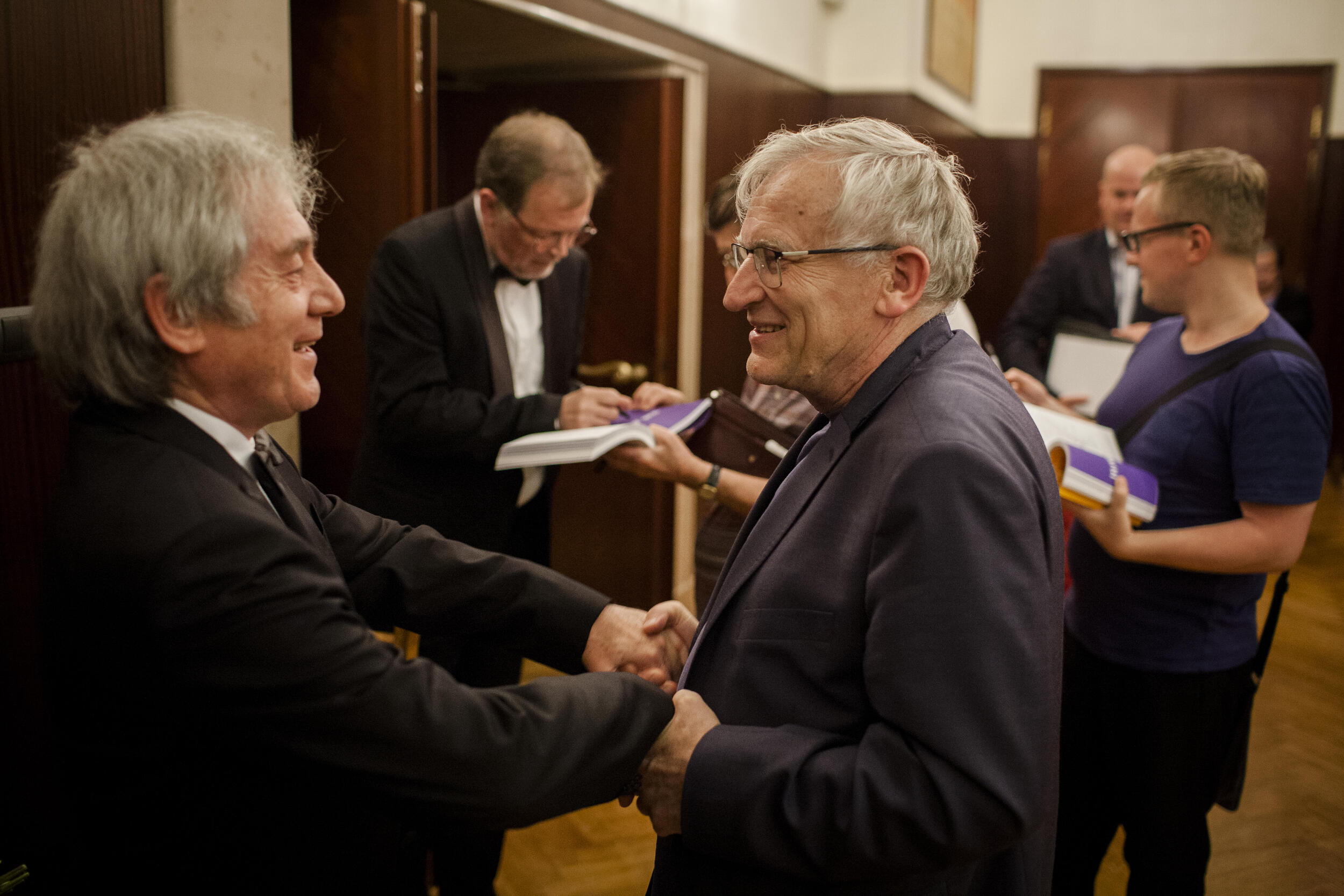 Dmitri Alexeev i Nikolai Demidenko przyjmują gratulacje po koncercie i rozdają autografy w Filharmonii Narodowej podczas XIII Międzynarodowego Festiwalu Muzycznego „Chopin i Jego Europa” [1]