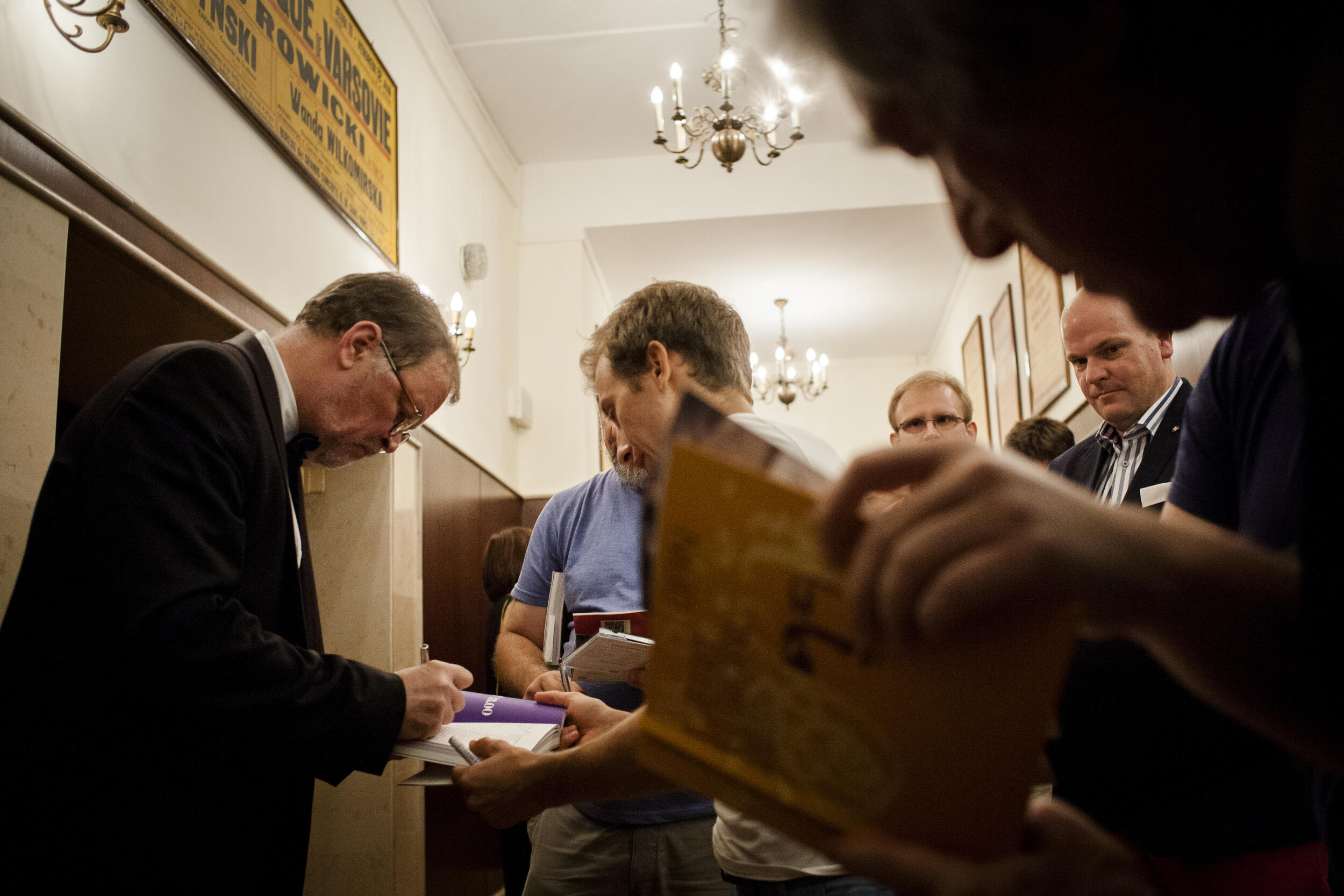 Dmitri Alexeev i Nikolai Demidenko przyjmują gratulacje po koncercie i rozdają autografy w Filharmonii Narodowej podczas XIII Międzynarodowego Festiwalu Muzycznego „Chopin i Jego Europa” [5]