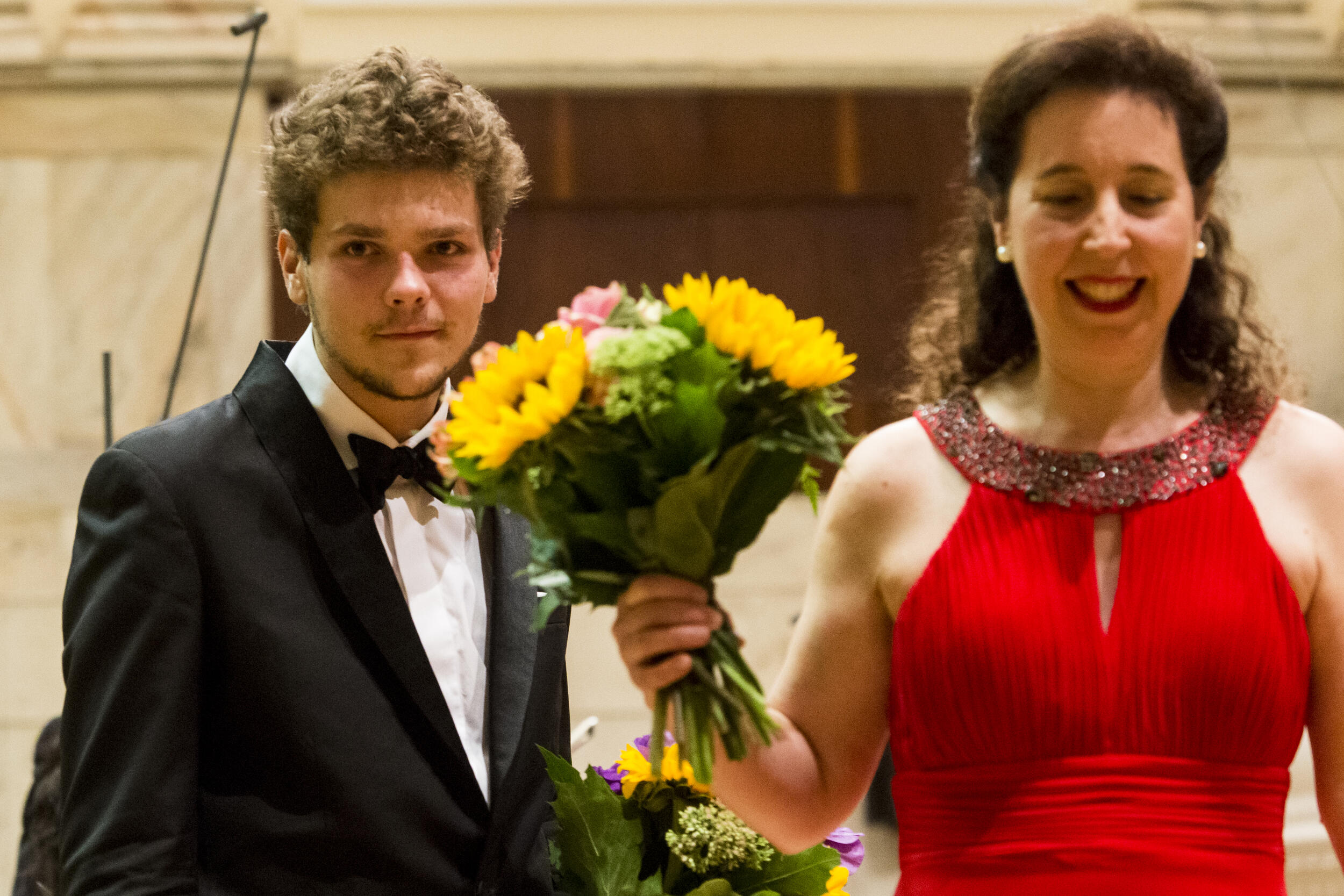 Wykonawcy otrzymują gratulacje po koncercie w Filharmonii Narodowej podczas XIII Międzynarodowego Festiwalu Muzycznego „Chopin i Jego Europa” [2]