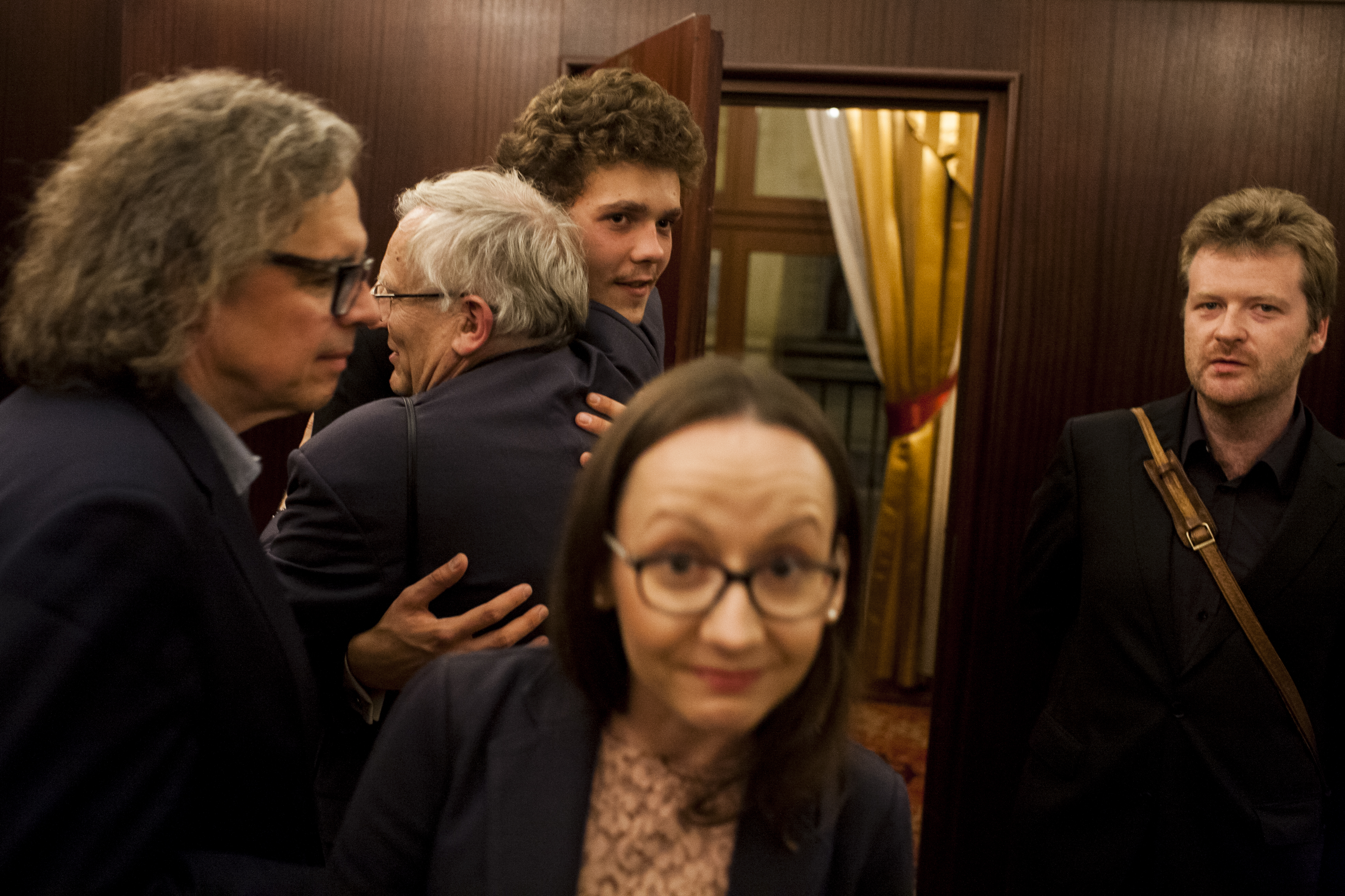 Wykonawcy otrzymują gratulacje po koncercie w Filharmonii Narodowej podczas XIII Międzynarodowego Festiwalu Muzycznego „Chopin i Jego Europa” [5]