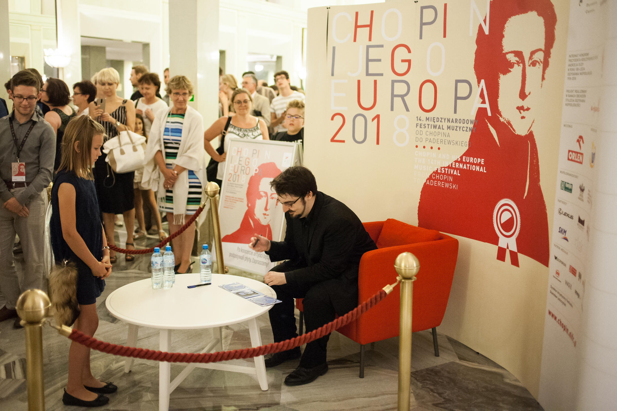 Charles Richard-Hamelin po recitalu przyjmuje gratulacje od dyrektora Stanisława Leszczyńskiego i rozdaje autografy w Teatrze Wielkim – Operze Narodowej podczas XIV Międzynarodowego Festiwalu Muzycznego „Chopin i Jego Europa” [3]