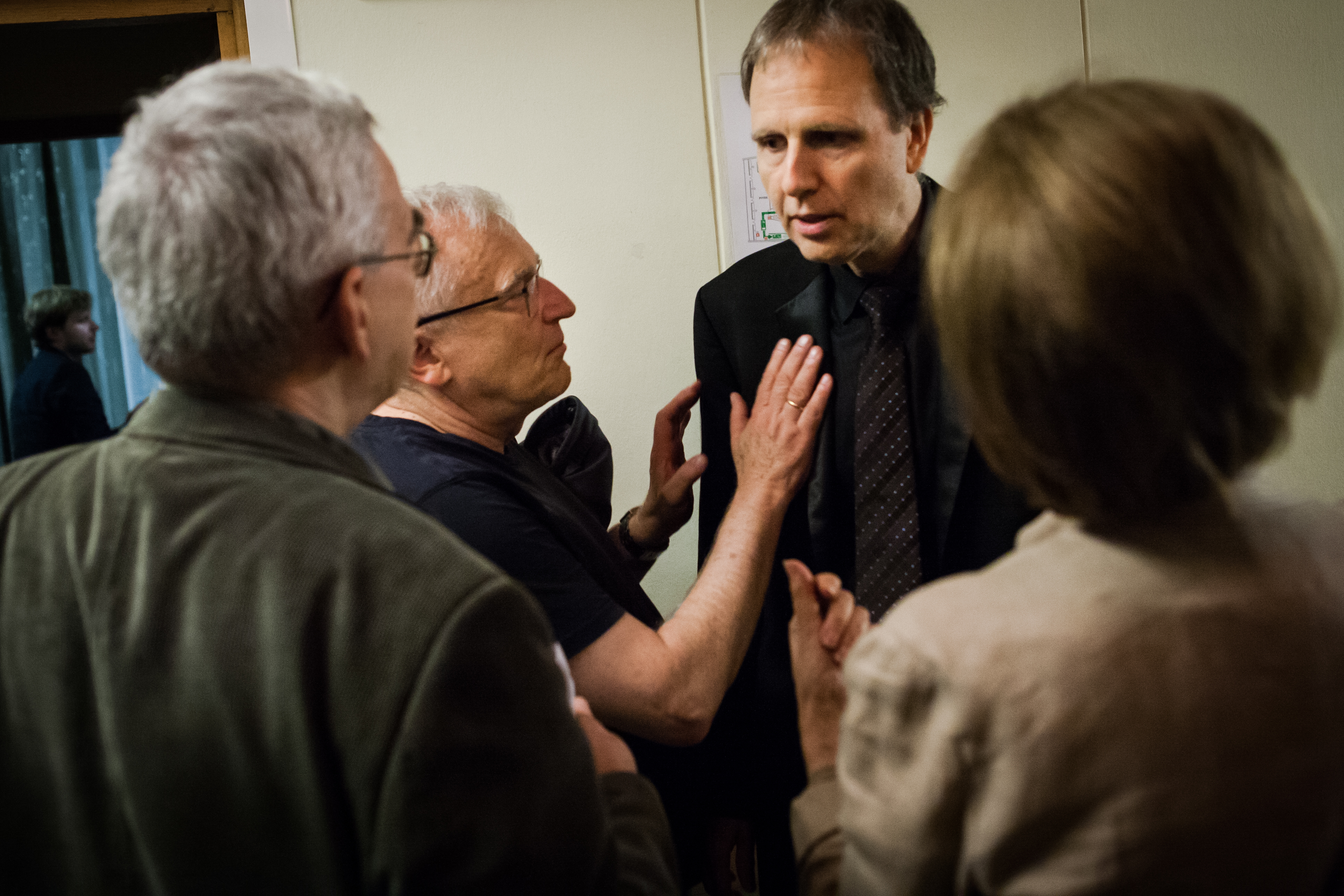 Muzycy przyjmują gratulacje po koncercie „Chopin kameralnie” w Studiu Koncertowym Polskiego Radia im. Witolda Lutosławskiego podczas XIV Międzynarodowego Festiwalu Muzycznego „Chopin i Jego Europa” [8]