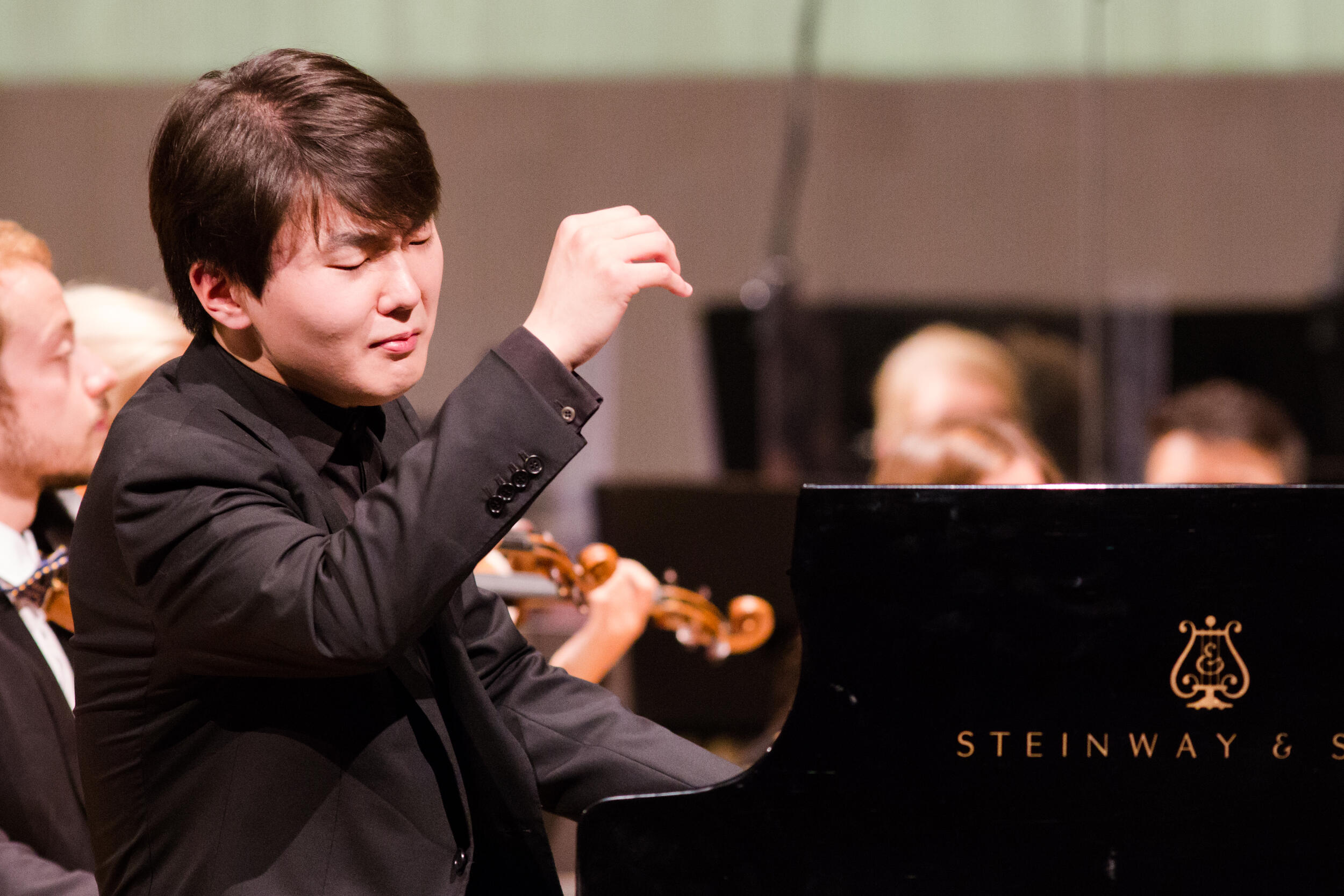 Część I koncertu symfonicznego w wykonaniu Seong-Jin Cho z Młodzieżową Orkiestrą Unii Europejskiej pod batutą Gianandrey Nosedy w Sali Moniuszki Teatru Wielkiego – Opery Narodowej podczas XIV Międzynarodowego Festiwalu Muzycznego „Chopin i Jego Europa” [7]