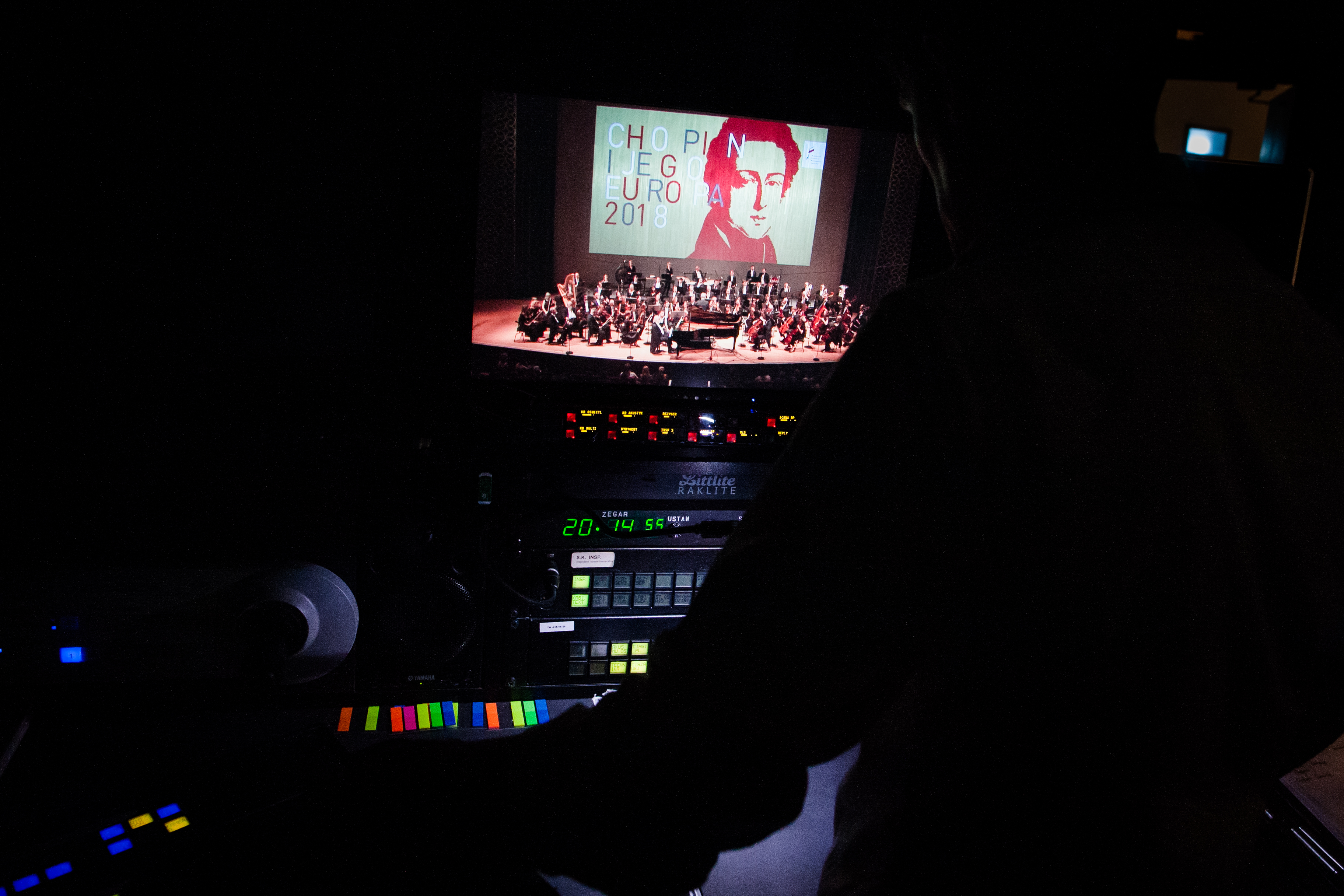 Muzycy przed wejściem na scenę i w trakcie koncertu symfonicznego w Sali Moniuszki Teatru Wielkiego – Opery Narodowej podczas XIV Międzynarodowego Festiwalu Muzycznego „Chopin i Jego Europa” [9]