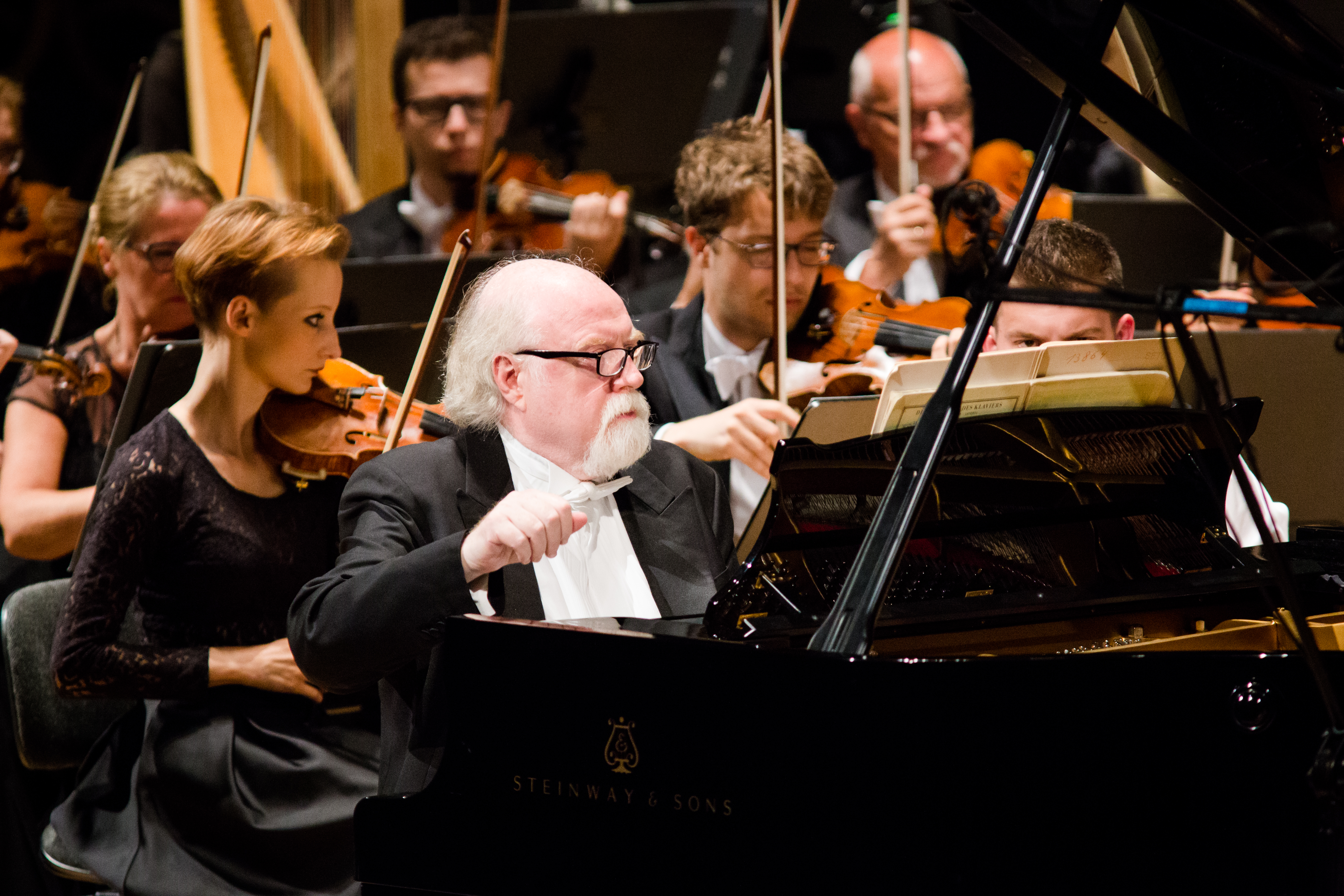 Muzycy przed wejściem na scenę i w trakcie koncertu symfonicznego w Sali Moniuszki Teatru Wielkiego – Opery Narodowej podczas XIV Międzynarodowego Festiwalu Muzycznego „Chopin i Jego Europa” [10]