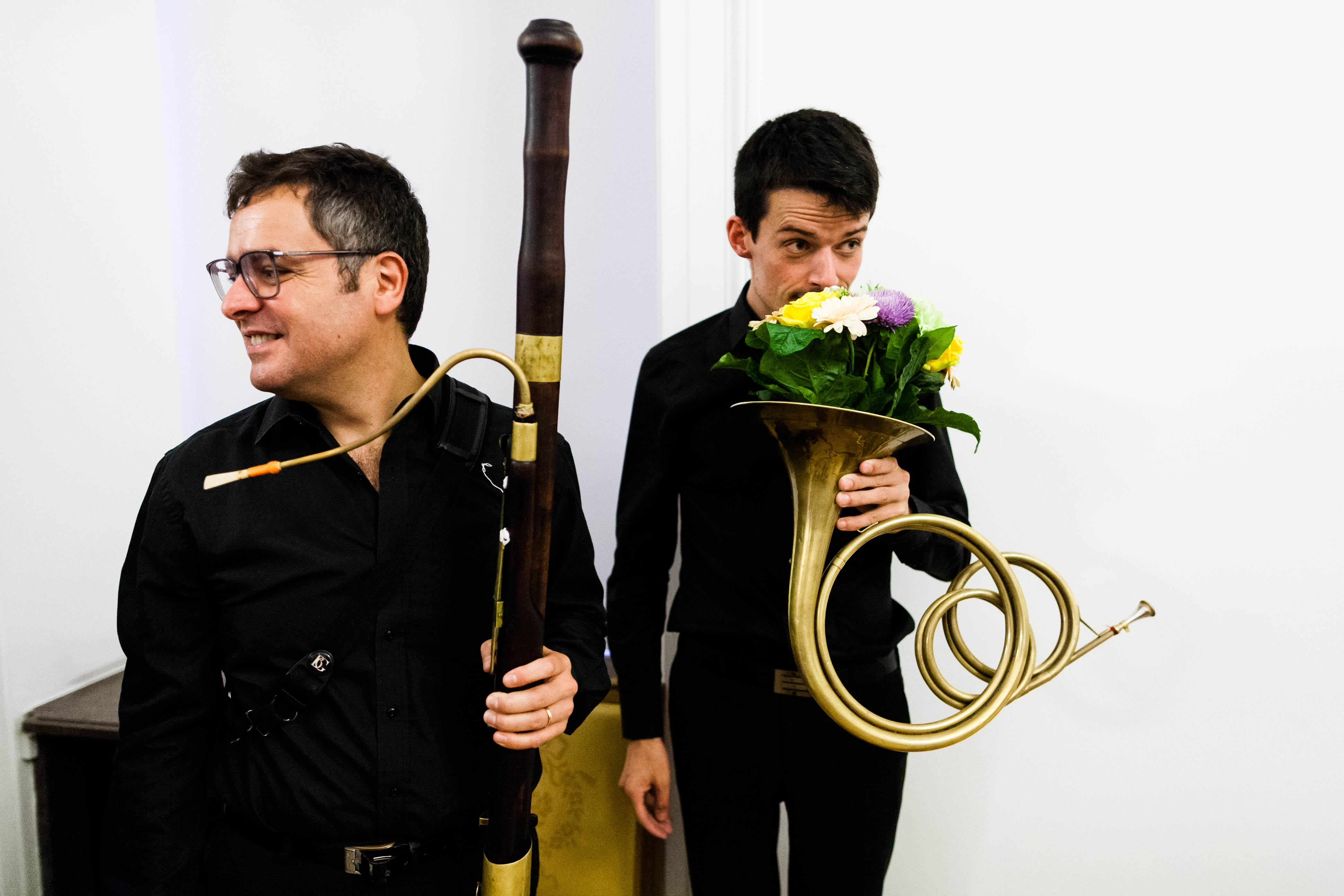 Muzycy z Ensemble Dialoghi przyjmują gratulacje po koncercie w Teatrze Wielkim – Operze Narodowej podczas XIV Międzynarodowego Festiwalu Muzycznego „Chopin i Jego Europa” [5]
