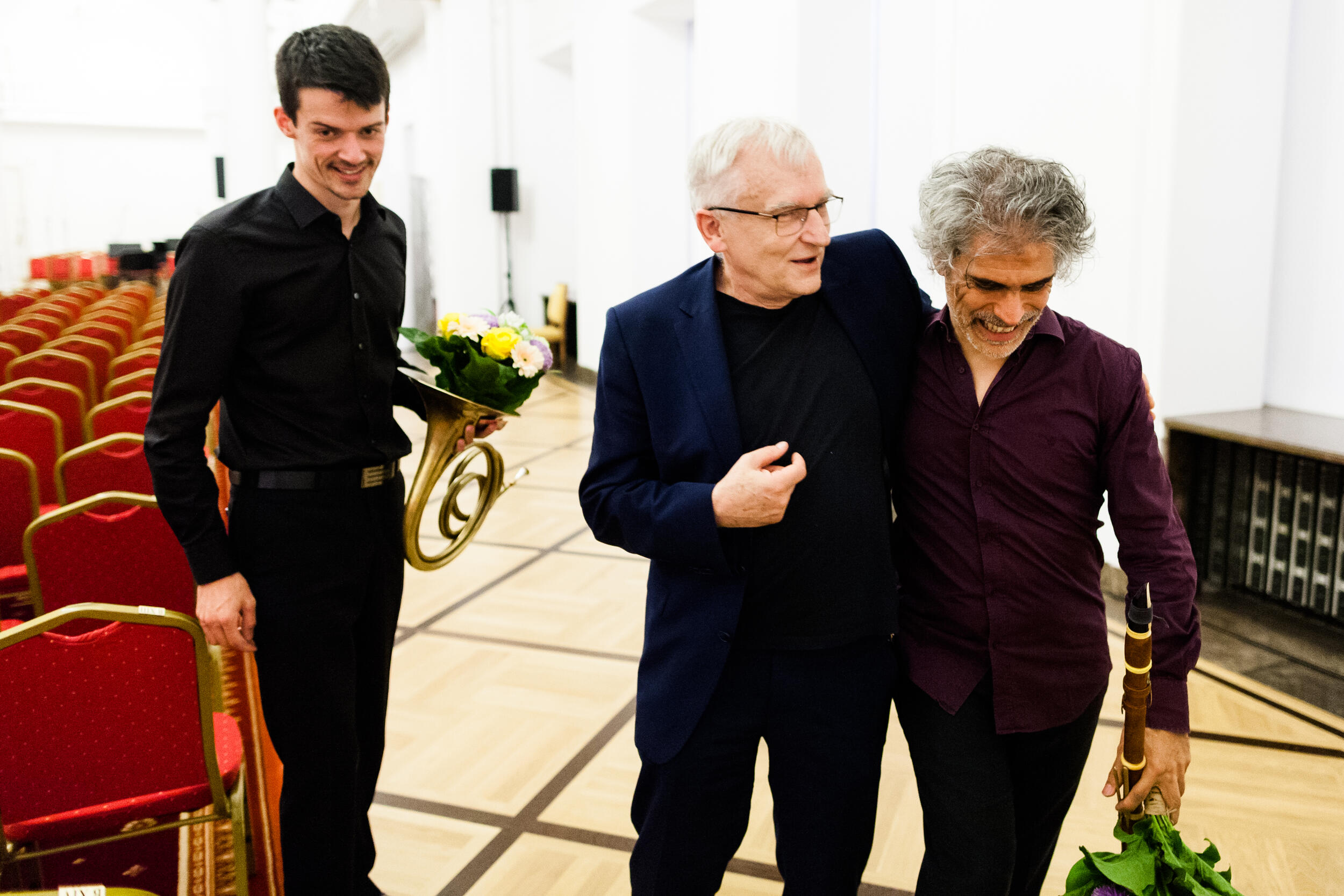 Muzycy z Ensemble Dialoghi przyjmują gratulacje po koncercie w Teatrze Wielkim – Operze Narodowej podczas XIV Międzynarodowego Festiwalu Muzycznego „Chopin i Jego Europa” [7]