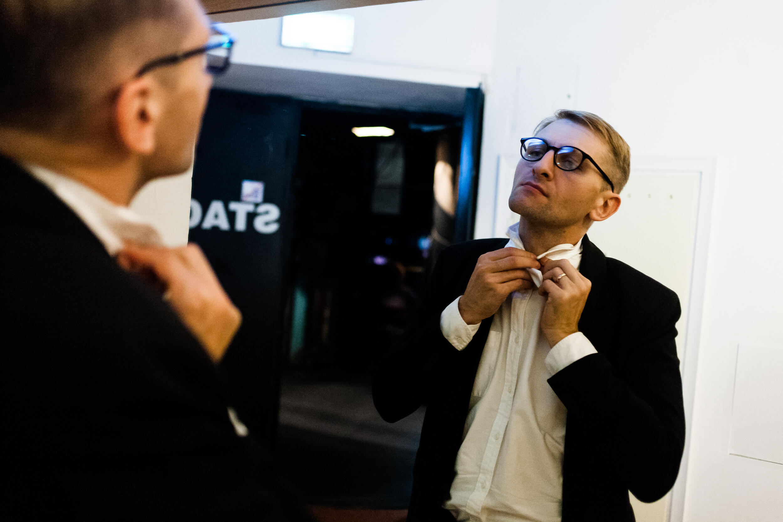 Muzycy przed koncertem symfonicznym w Teatrze Wielkiem – Operze Narodowej podczas XIV Międzynarodowego Festiwalu Muzycznego „Chopin i Jego Europa” [1]