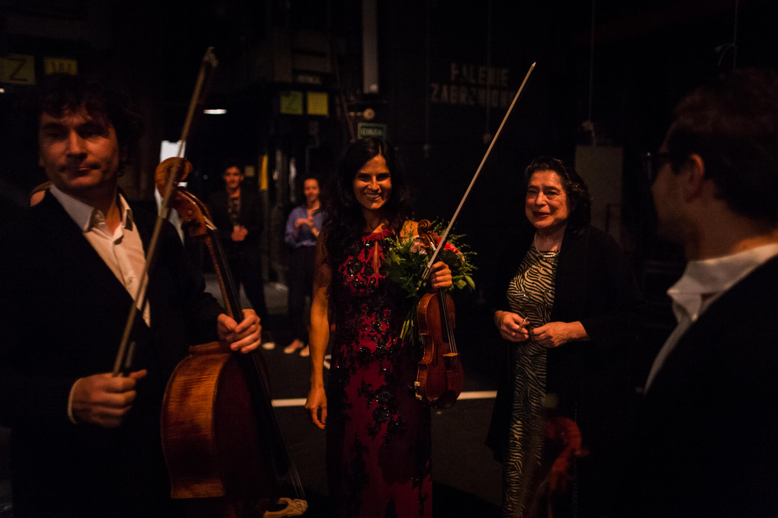 Wykonawcy odbierają gratulacje po koncercie kameralnym w Teatrze Wielkim – Operze Narodowej podczas XIV Międzynarodowego Festiwalu Muzycznego „Chopin i Jego Europa” [1]