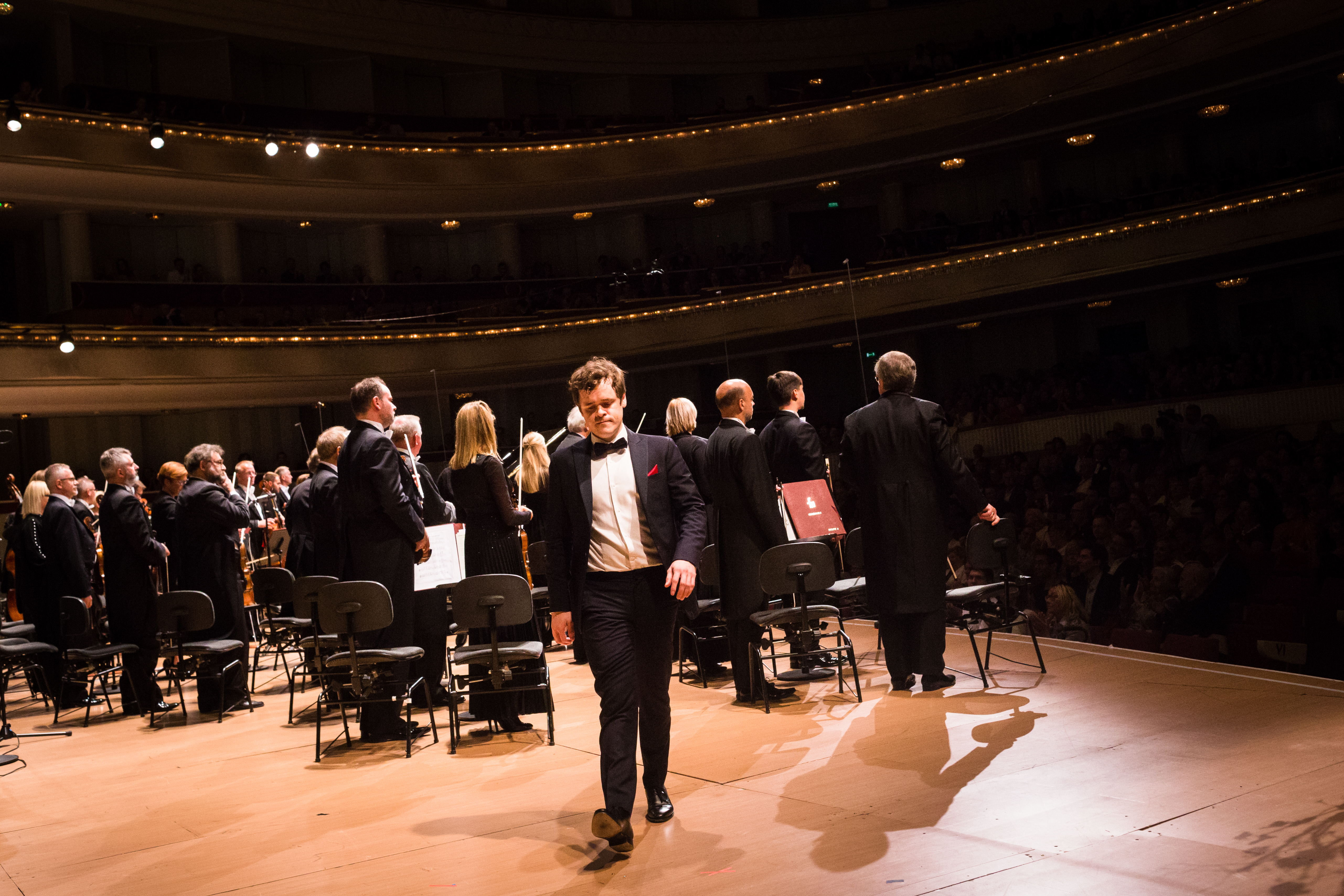 Część II koncertu symfonicznego w wykonaniu Benjamina Grosvenora z Orkiestrą Filharmonii Narodowej pod batutą Jacka Kaspszyka w Sali Moniuszki Teatru Wielkiego – Opery Narodowej podczas XIV Międzynarodowego Festiwalu Muzycznego „Chopin i Jego Europa” [6]