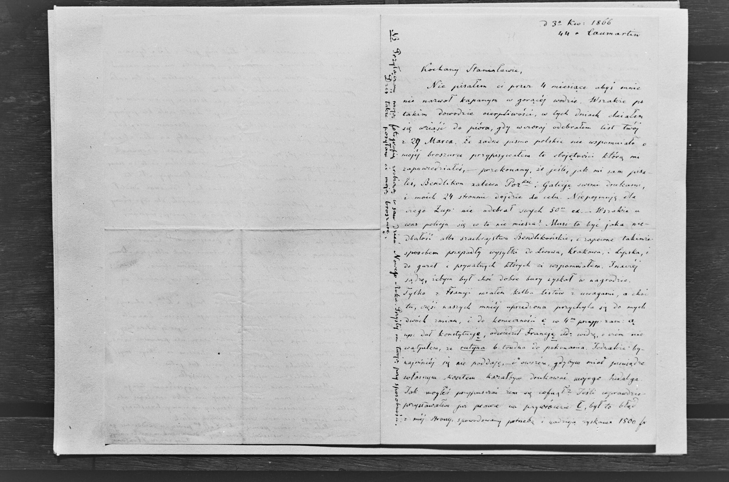 List Juliana Fontany do Stanisława Egberta Koźmiana (NEGATYWY)
