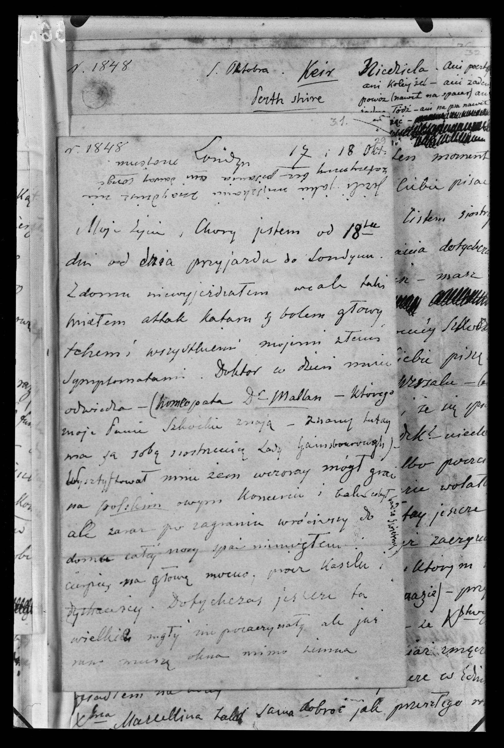 List Fryderyka Chopina do Wojciecha Grzymały w Paryżu (NEGATYWY)