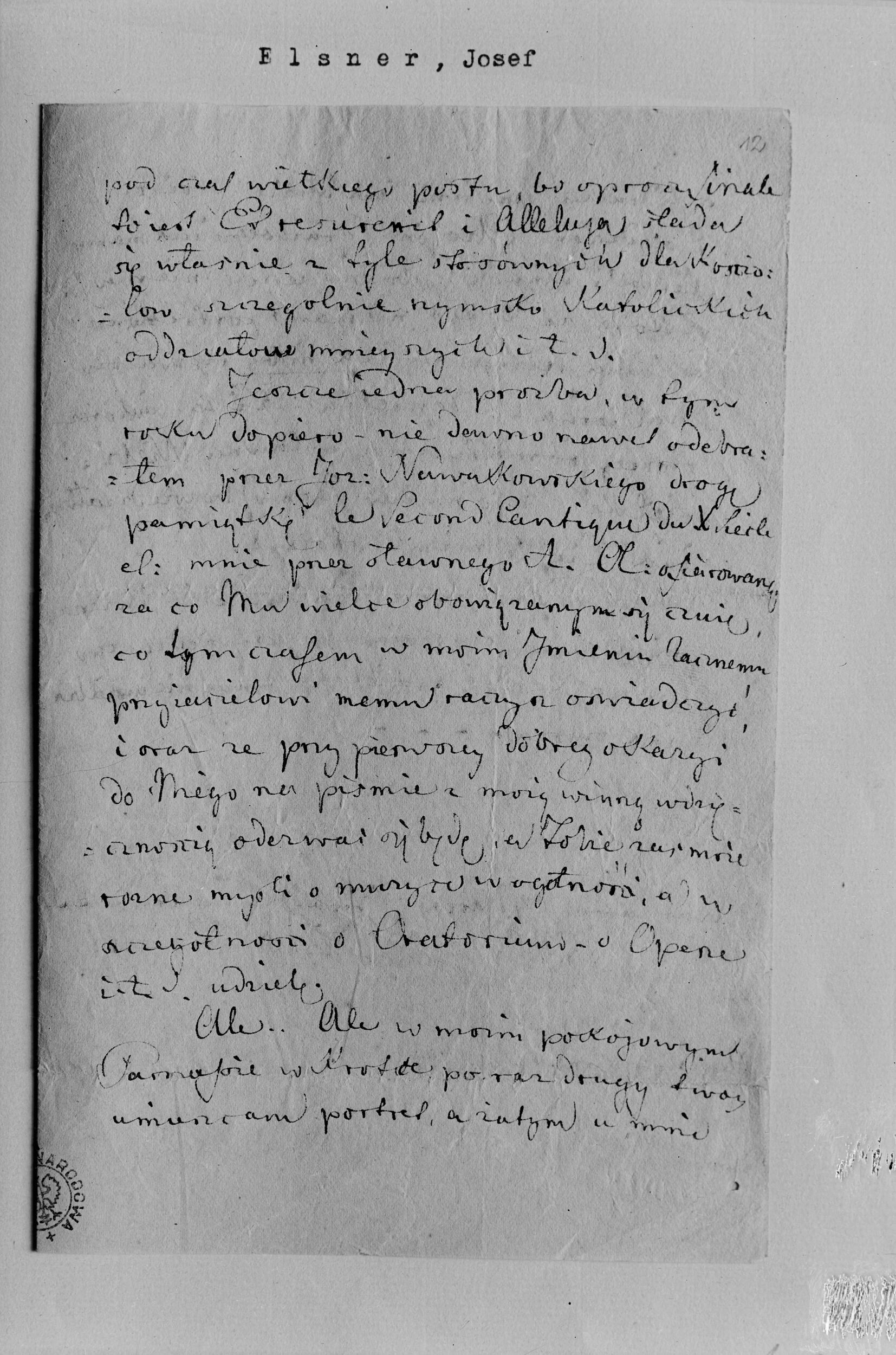 List Józefa Elsnera do Fryderyka Chopina w Paryżu (NEGATYWY)