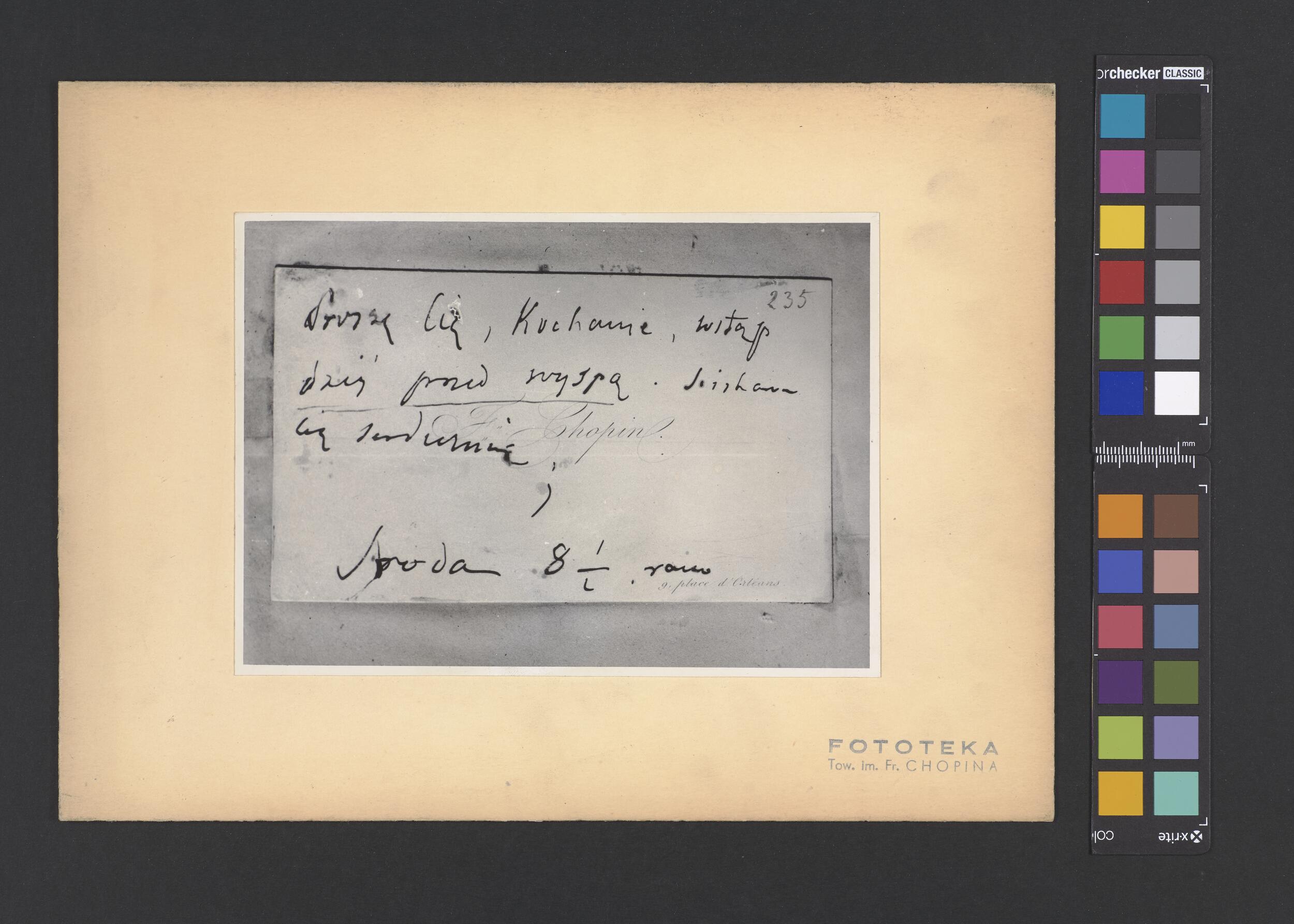 List Fryderyka Chopina do Adolfa Cichowskiego w Paryżu na bilecie wizytowym (POZYTYW)