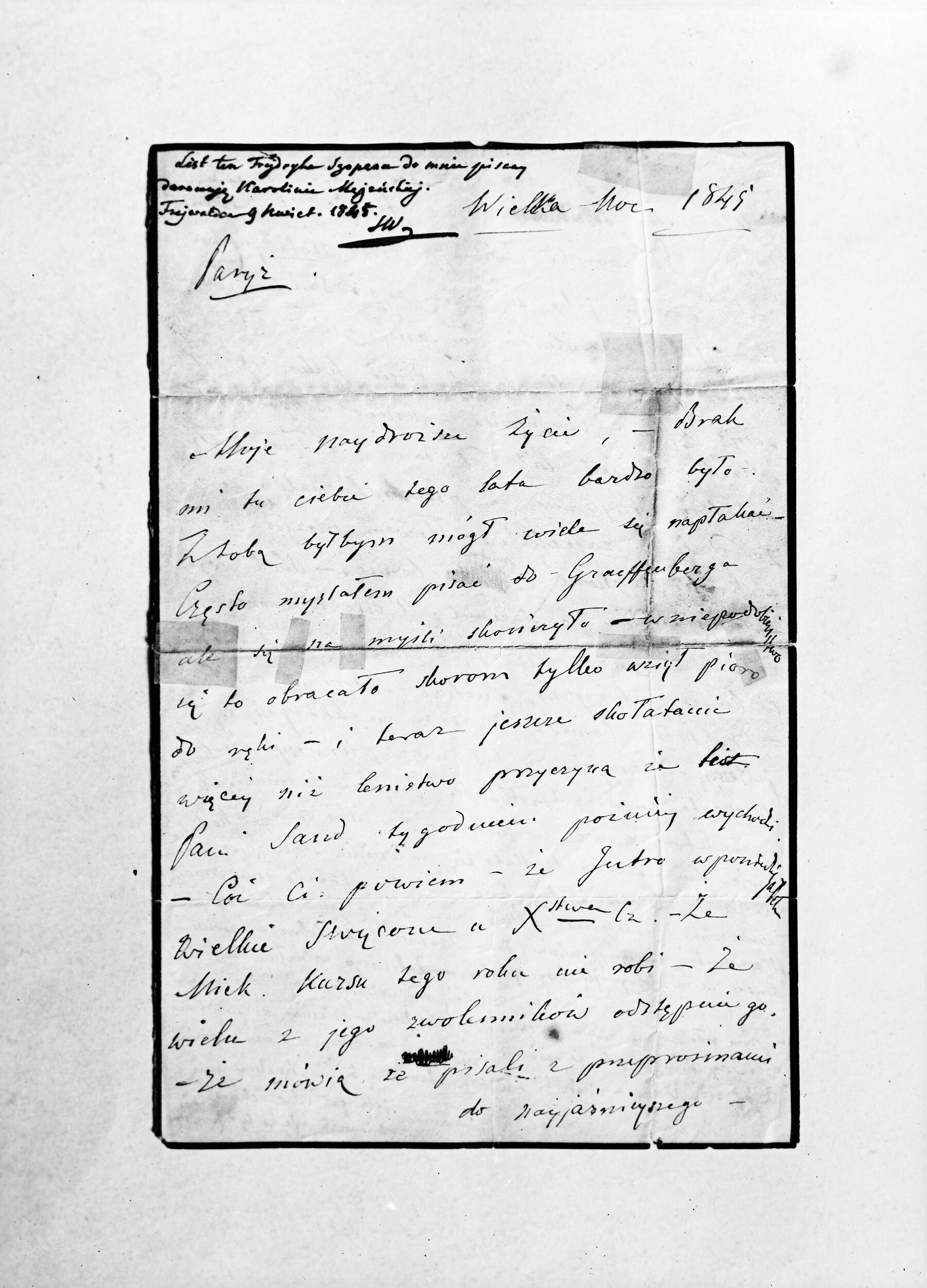 List Fryderyka Chopina do Stefana Witwickiego we Freiwaldau (NEGATYWY)