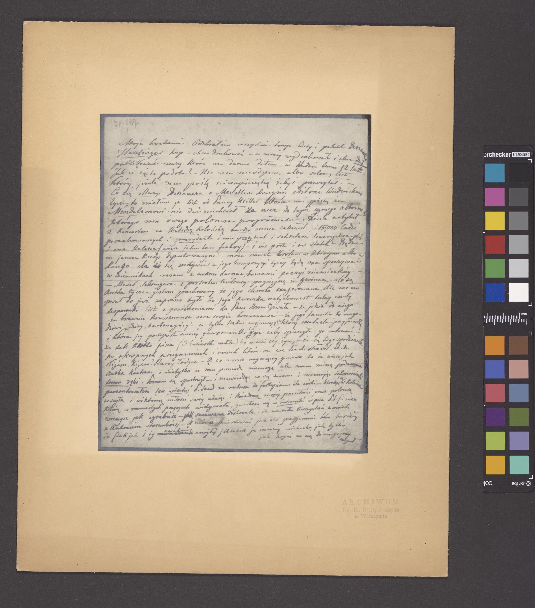 Pierwsza strona listu Fryderyka Chopina do Juliana Fontany w Paryżu