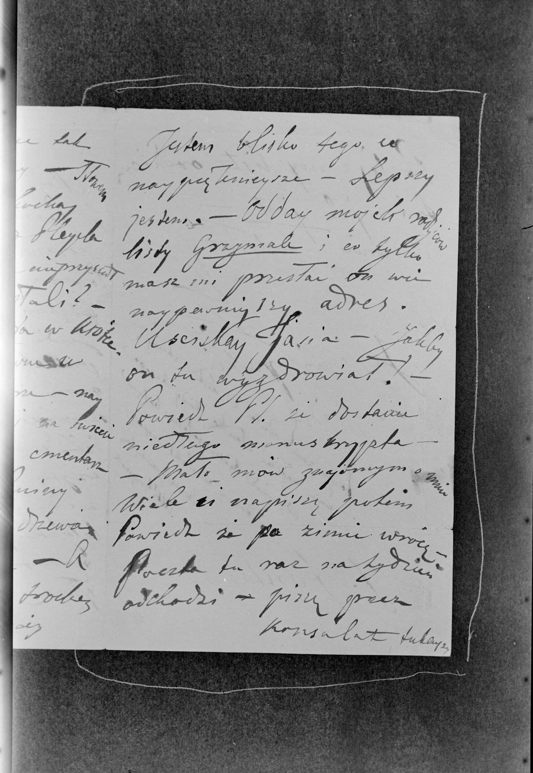 List Fryderyka Chopina z dopiskiem Wojciecha Grzymały do Juliana Fontany w Paryżu (NEGATYWY)