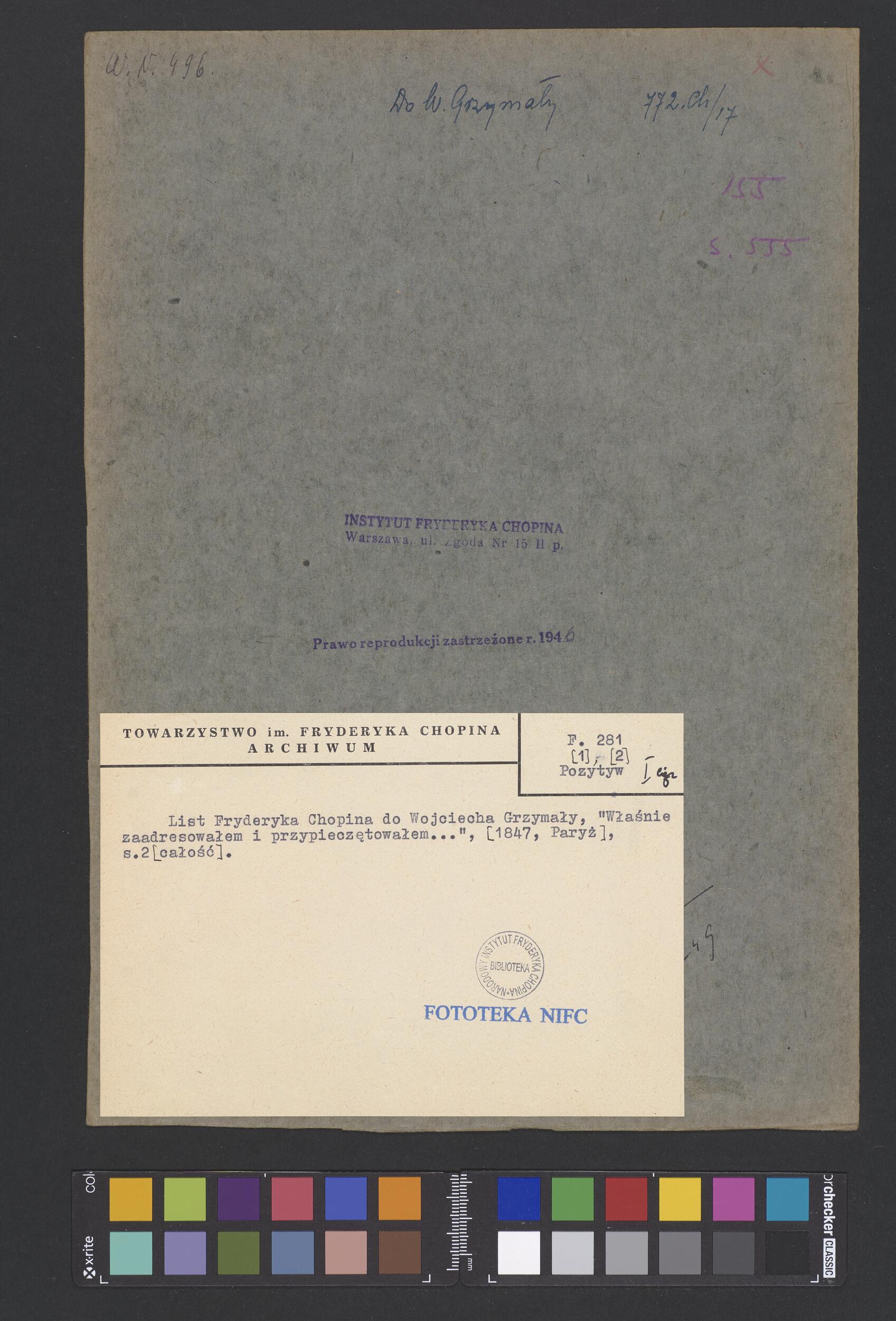 List Fryderyka Chopina do Wojciecha Grzymały w Paryżu (POZYTYWY I EGZ)