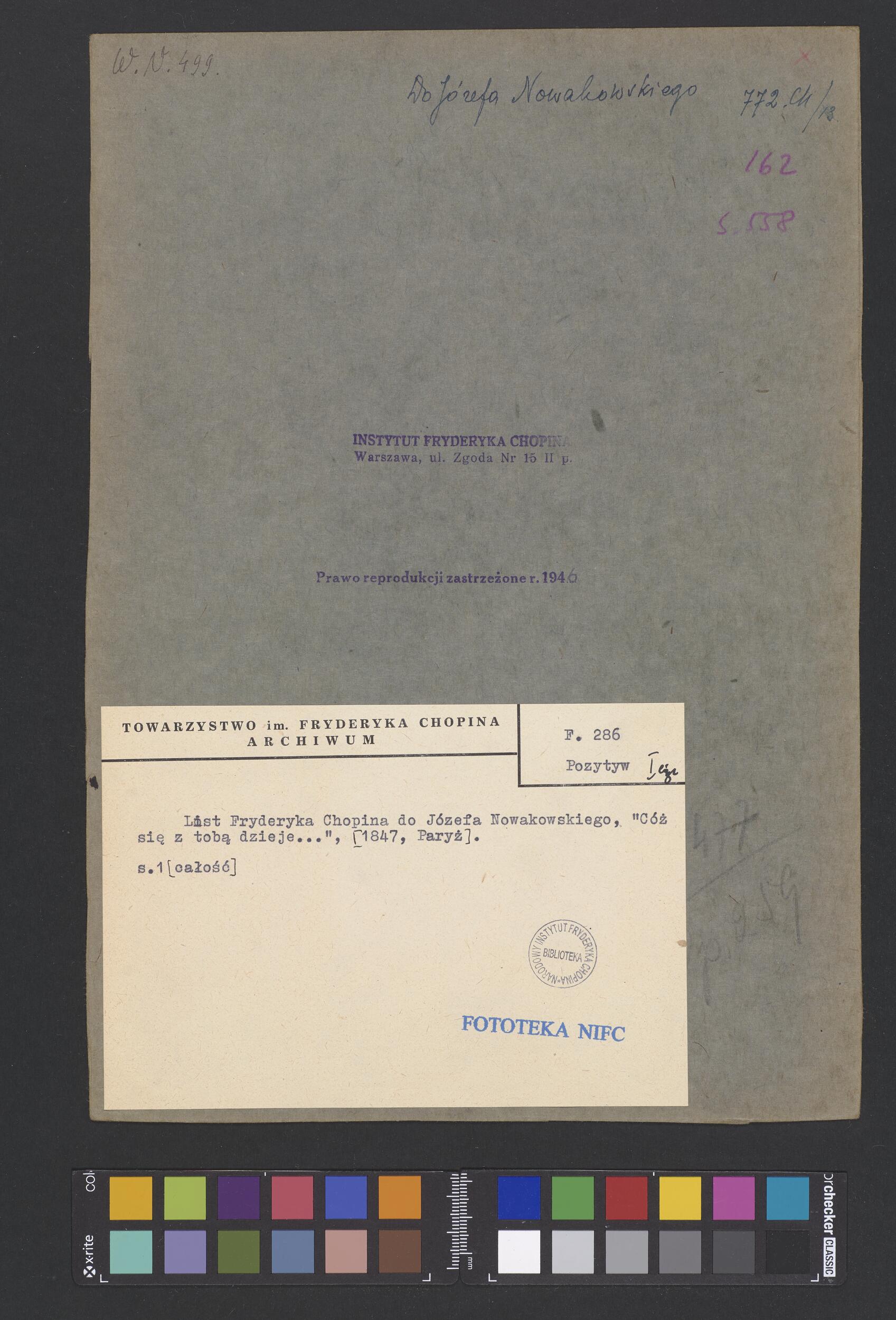 List Fryderyka Chopina do Józefa Nowakowskiego w Paryżu (POZYTYW I EGZ)