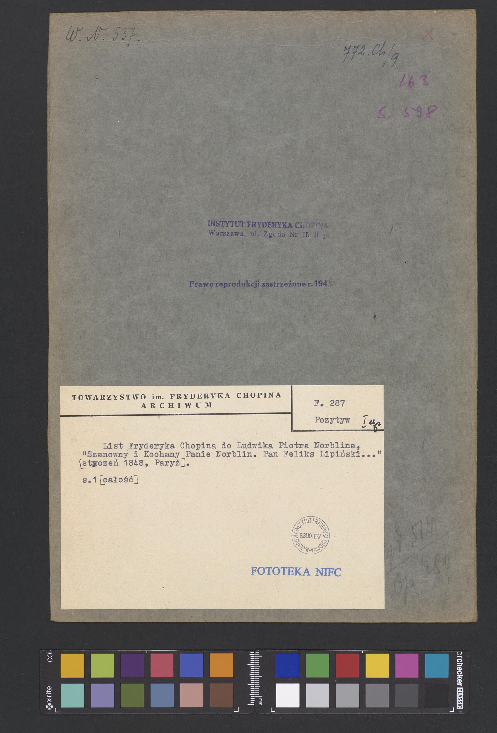 List Fryderyka Chopina do Ludwika Piotra Norblina w Paryżu (POZYTYW I EGZ)