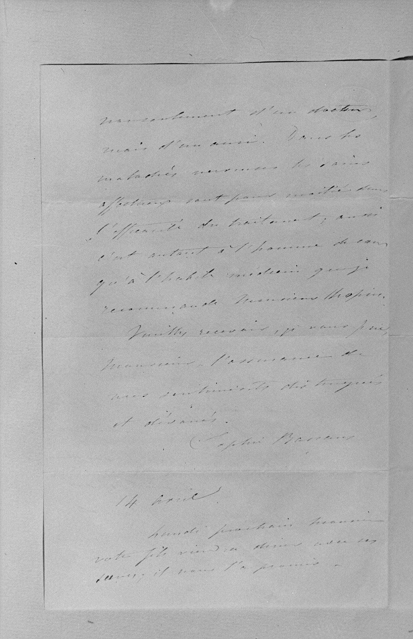 List Sophie Bascans do doktora Curie w Londynie (NEGATYWY)