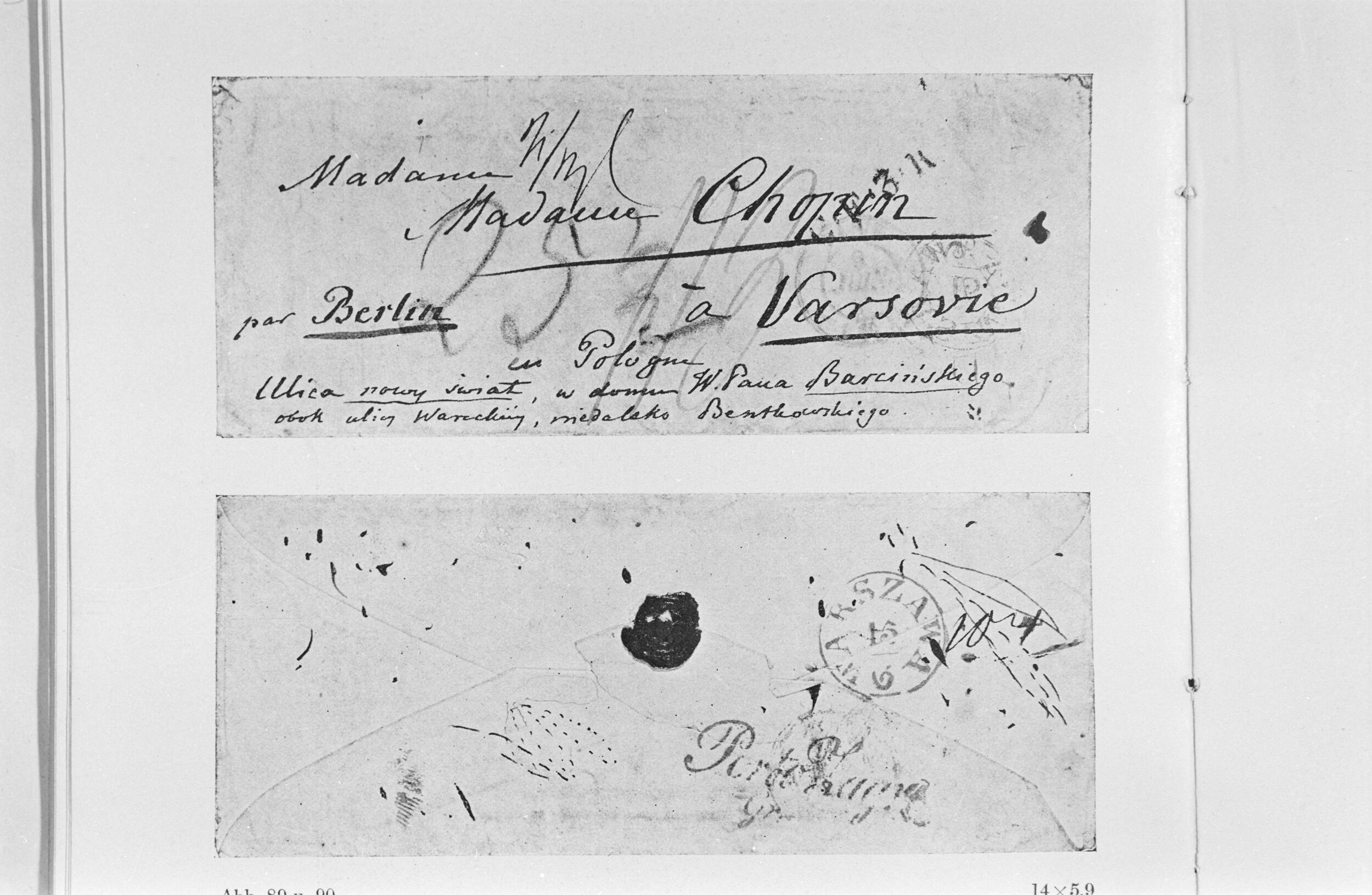 Koperta do listu Fryderyka Chopina do rodziny w Warszawie (NEGATYW II EGZ)