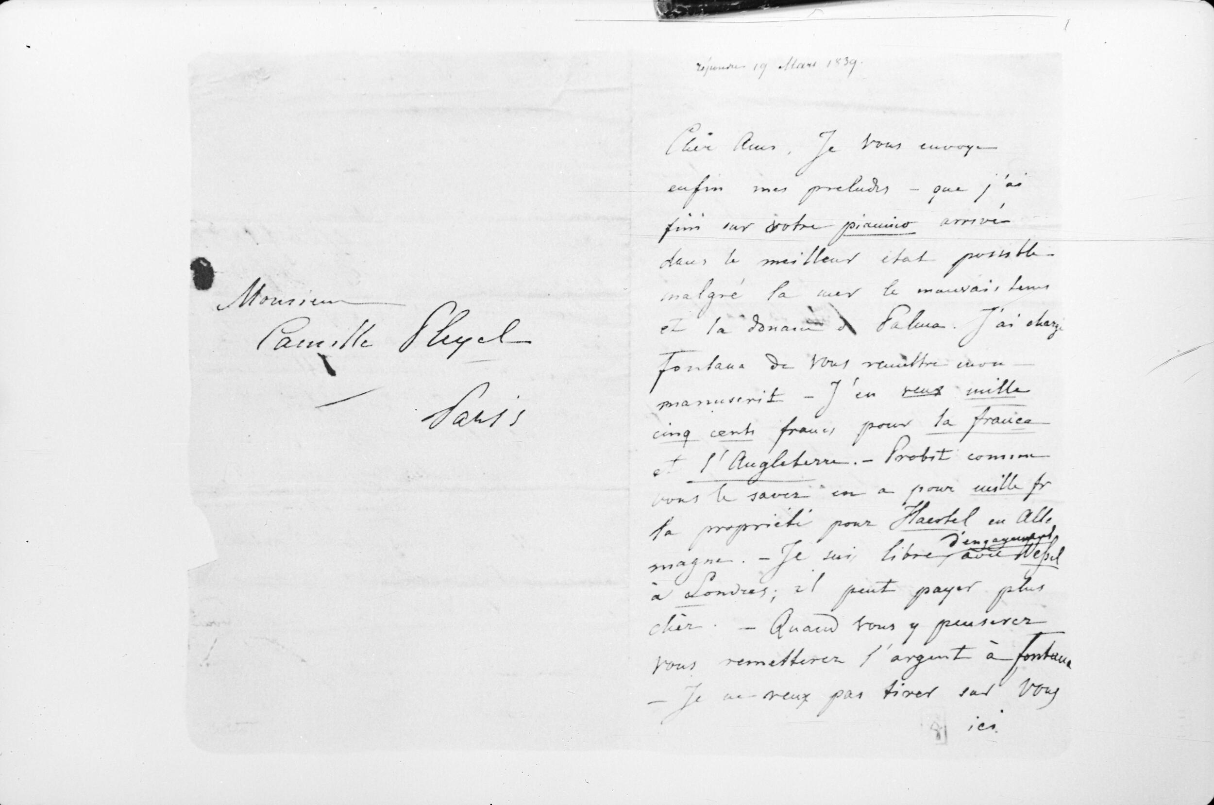 List Fryderyka Chopina do Camille'a Pleyela w Paryżu (NEGATYWY)