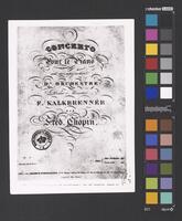 Autor nieznany, reprodukcja (przed 1962) strony tytułowej pierwodruku Fryderyka Chopina, „CONCERTO | Pour le Piano | avec accompagnement | D'ORCHESTRE | Dédié à Monsieur | F. KALKBRENNER | PAR | Fréd. Chopin. | Op: 11. [...]”, Maurice Schlesinger, [M. S. 1409.], Paris, [1833], s. 1., Towarzystwo imienia Fryderyka Chopina (Warszawa)