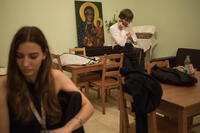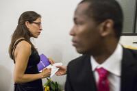 Wojciech Grzędziński, Chopin i Jego Europa 2016, Przerwa po I części koncertu symfonicznego, Beatrice Rana otrzymuje gratulacje, rozmowy kuluarowe w Filharmonii Narodowej, Warszawa, 30/08/2016.