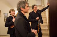 Wojciech Grzędziński, Chopin i Jego Europa 2017, Muzycy w foyer po Nadzwyczajnym koncercie oratoryjnym w 450. rocznicę urodzin Claudia Monteverdiego w Filharmonii Narodowej, Warszawa, 15/08/2017.