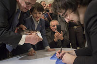 Wojciech Grzędziński, Koncert Urodzinowy Fryderyka Chopina 2016, Charles Richard Hamelin rozdaje autografy po występie w Filharmonii Narodowej, Warszawa, 02/03/2016.