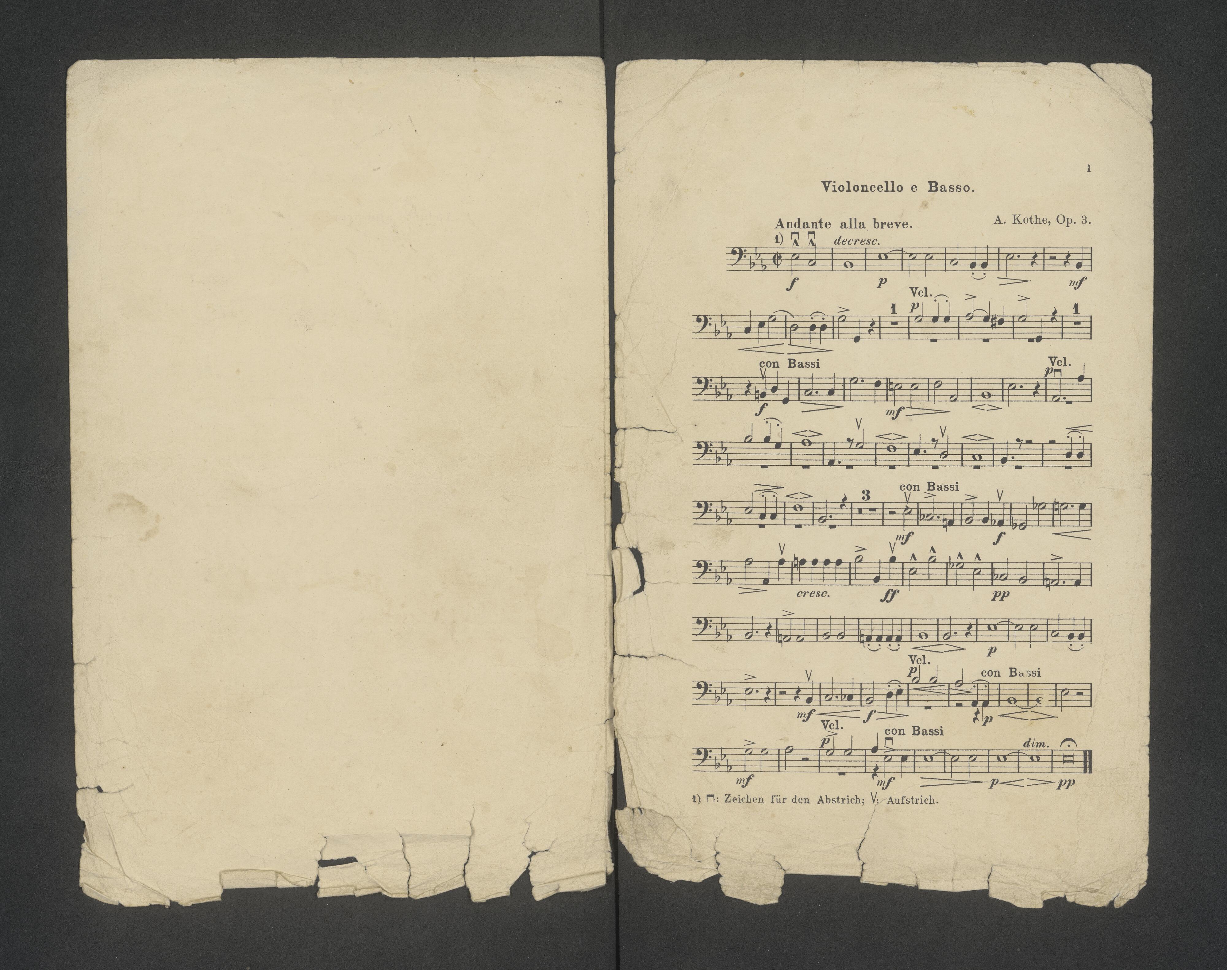 [title page:] "Adoramus te, Christe." | OFFERTORIUM | für | [Sop]ran, Alt, Tenor und Bass | (mit willkürlichen Begleitung der Orgel oder des Streichquartette) | komponirt und | [H]ochwürdigen dem Fürst-Erzbischöftlichen Komissarius | Herrn | CARL ULLRICH, | Päpstlichen Heiligkeit geheimen Kammerherrn, Ehrendommherrn | zu Kremsier etc. | ehrerbietigst zugeeignet | von | ALOYS KOTHE. | Op. 3. | Zum Gebrauch | Am Kreuzfesten, am Charfreitag und anderen Festen zum Leiden Christi. | Dritte Auflage. | Partitur mit Orgelbegleitung 50 Singstimmen 50 | Streichquartett 50 | [Präm]iirt von der Königl. Akadenie der Künste in Berlin. | Angenommen in der Cäcilien-Vereins-Katalog. | Verlag von Carl Kothe in Leobschütz
