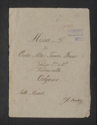 CT handwritten, p. [1-9] musical text, p. [10] blank, p. [11-15, 17-21, 23-31, 33-39, 41-47] musical text, p. [16, 22, 32, 40] blank, [pl-text: Na obwolucie dawne sygnatury u góry po prawej: "N-54" ręką nieznanego Paulina, ołówkiem; "N 162." zapisana przez F. Maletza czerwonym tuszem; "75" w kółku zapisana ołówkiem, sporządzona przez ks. W. Świerczka], [pl-text: Paginacja naniesiona w prawym górnym rogu na każdej stronie ołówkiem], [pl-text: Brak partii vlc], [pl-text: D.III-494 [skan 0005]: okrągła pieczęć tuszowa fioletowa: [gwiazdka] ARCHIVUM [gwiazdka] C. M. C.; pole: [herb Zakonu Ojców Paulinów] 51032338, [pl-text: D.III-494 [skan 0001]: duża prostokątna pieczęć tuszowa fioletowa: Rękop. Muzycznych | OO. Paulinów na J. G. | sygn. [ołówkiem:] D.III-494] 51032338, [pl-text: D.III-494 [skan 0001]: mała prostokątna pieczęć tuszowa fioletowa: Arch. Muz. J. G. | sygn. [ołówkiem:] brak] 51032338