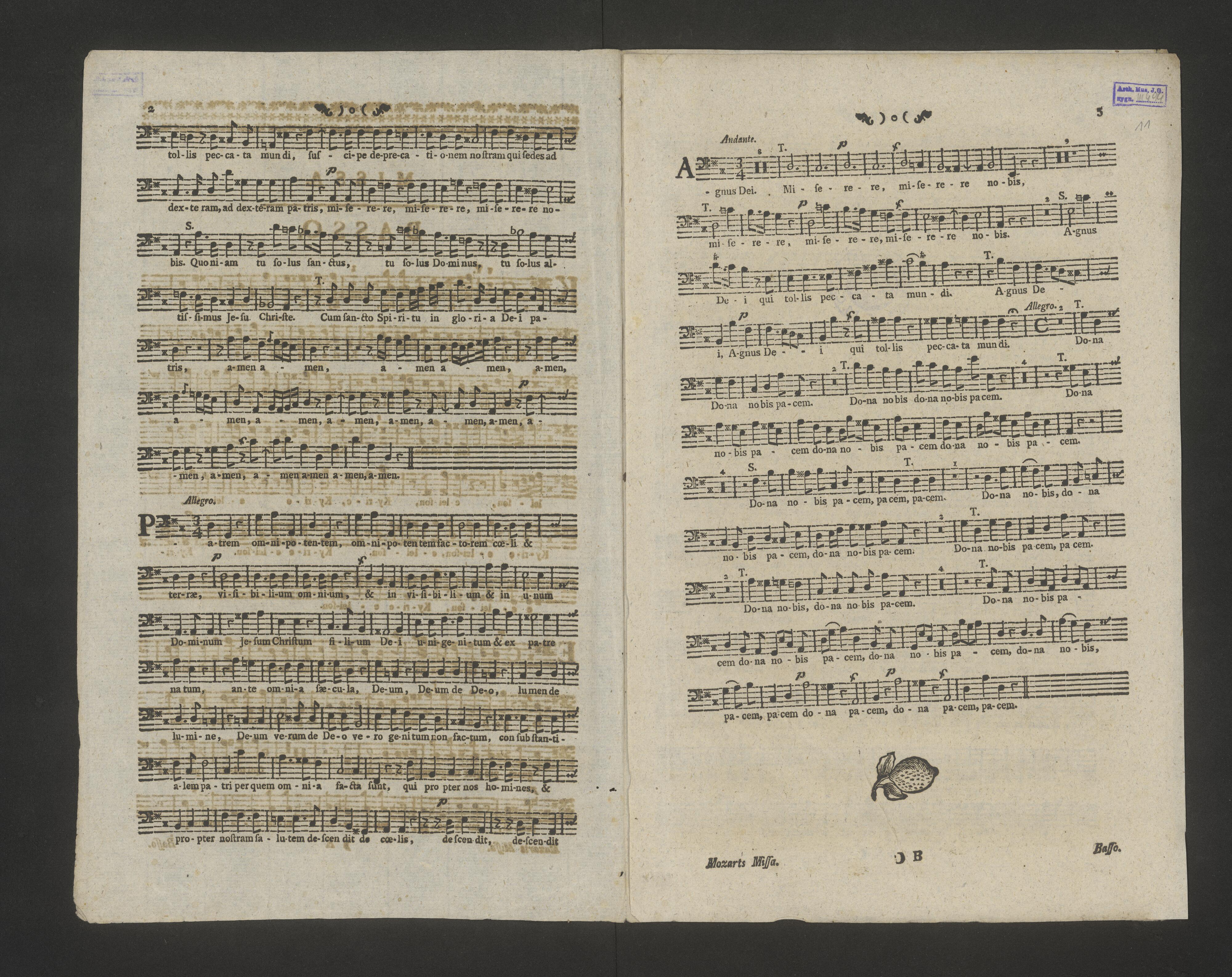 [cover title, handwritten:] Missa in D | für | Canto, Alto, Tenore, Basso. | Violino I|m|o et II|d|o | Violoncello | et | Organo. | [on the left side:] Auth. Mozart. | [on the right:] J: Maletz