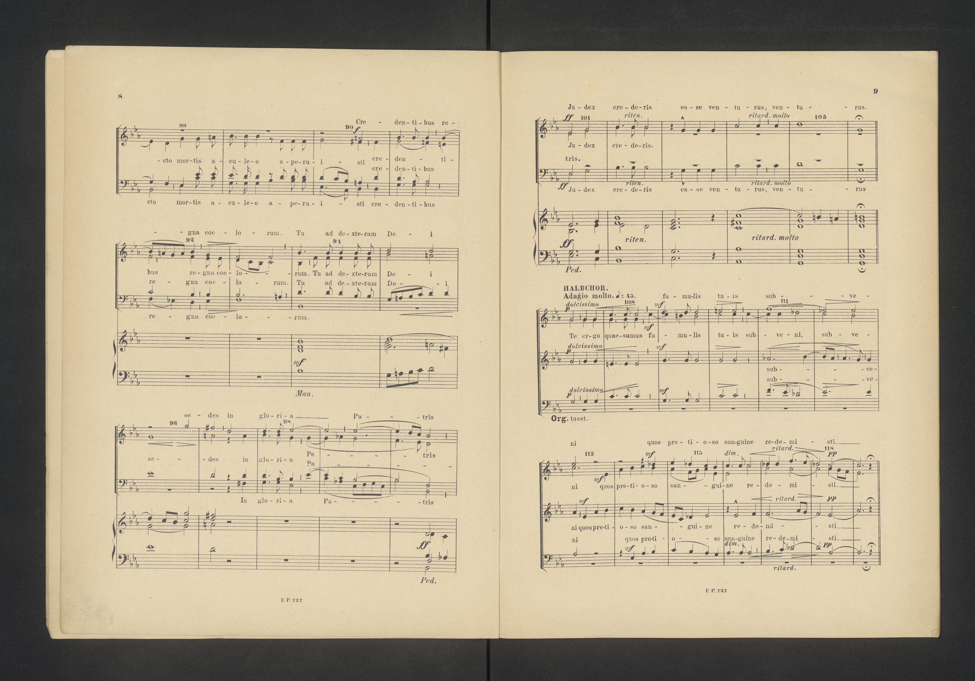 [cover title:] HYMNUS | "TE DEUM" | AD QUATUOR VOCES INAEQUALES | COMITANTE ORGANO, | AUCTORE [!] | FRANCISCO WITT. | OPUS X|a. | EDITIO QUARTA. | MDCCCXCIII. | RATISBONAE, NEO EBORACI ET CINCINNATII. | SUMPTIBUS FRIDERICI PUSTET, | S. Sedis Apostolicae Typographi