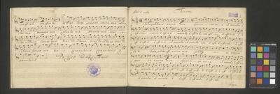 Other parts missing., [pl-text: Foliacja ołówkiem (f. 1-6)], [pl-text: Zidentyfikowano po RISM ID 550018571 (CZ-Pnm XXXVIII A 337); 600048985 (A-SL ohne Signatur)], [pl-text: Na ostatniej stronie każdego głosu okrągła pieczęć: "* ARCHIVUM * C. M. C."]
