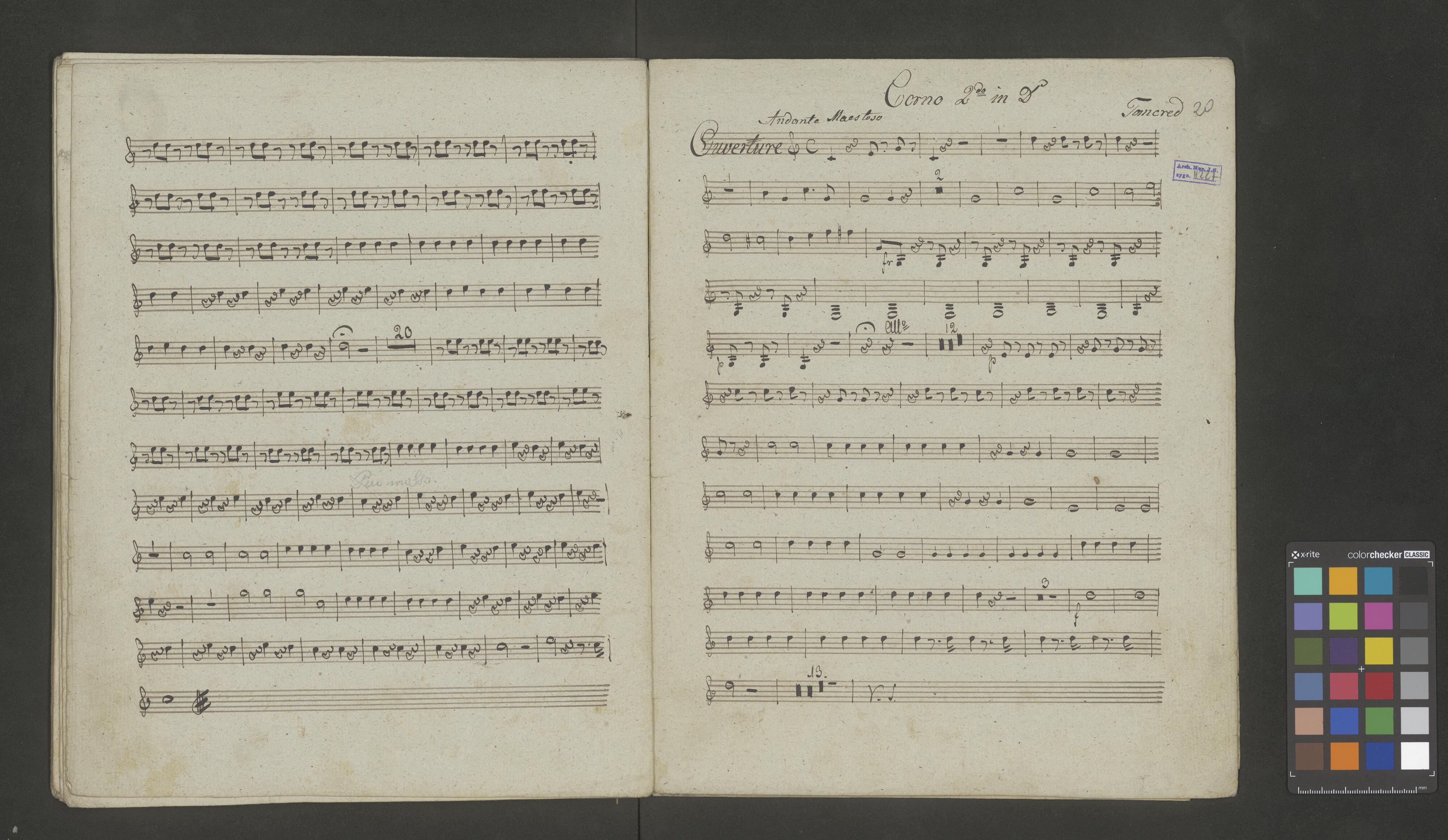 [cover title:] Ouverture | z Opery | Tankred | a | Violino I|m|o et 2|d|o | Alto Viola | Flauto I|m|o et 2|d|o | Clarinetto I|m|o et 2|d|o | Oboe I|m|o et 2|d|o | Corno I|m|o et 2|d|o | Clarino I|m|o et 2|d|o | Fagotto I|m|o et 2|d|o | Tympano | Basso et Violoncello | par Rossini