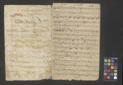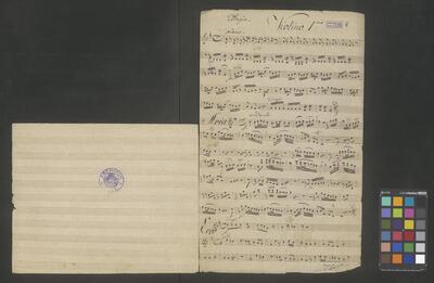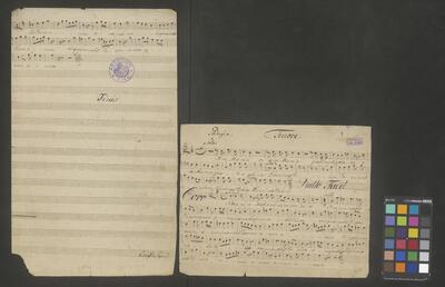 [pl-text: Wcześniejsze sygnatury na f. 1r okładki: u góry po prawej ołówkiem ręką nieznanego Paulina "N|o 174[?]" z dopiskiem "N. N."]; nadpisano czerwonym tuszem ręką F. Maletza "N 1057/358"; powyżej po lewej ołówkiem ręką W. Świerczka "485" w owalnym kółku], [pl-text: Karta tytułowa okładki przekreślona czerwoną kredką oraz parafowana], [pl-text: Na f. 1v partii S, A, vl 1 czarnym tuszem: "Machofsky, Sigmund."], [pl-text: Foliacja ołówkiem (f. 1-8)], [pl-text: Brak konkordancji], [pl-text: Na f. 1r okładki oraz na ostatniej stronie każdego głosu okrągła pieczęć: "* ARCHIVUM * C. M. C."]