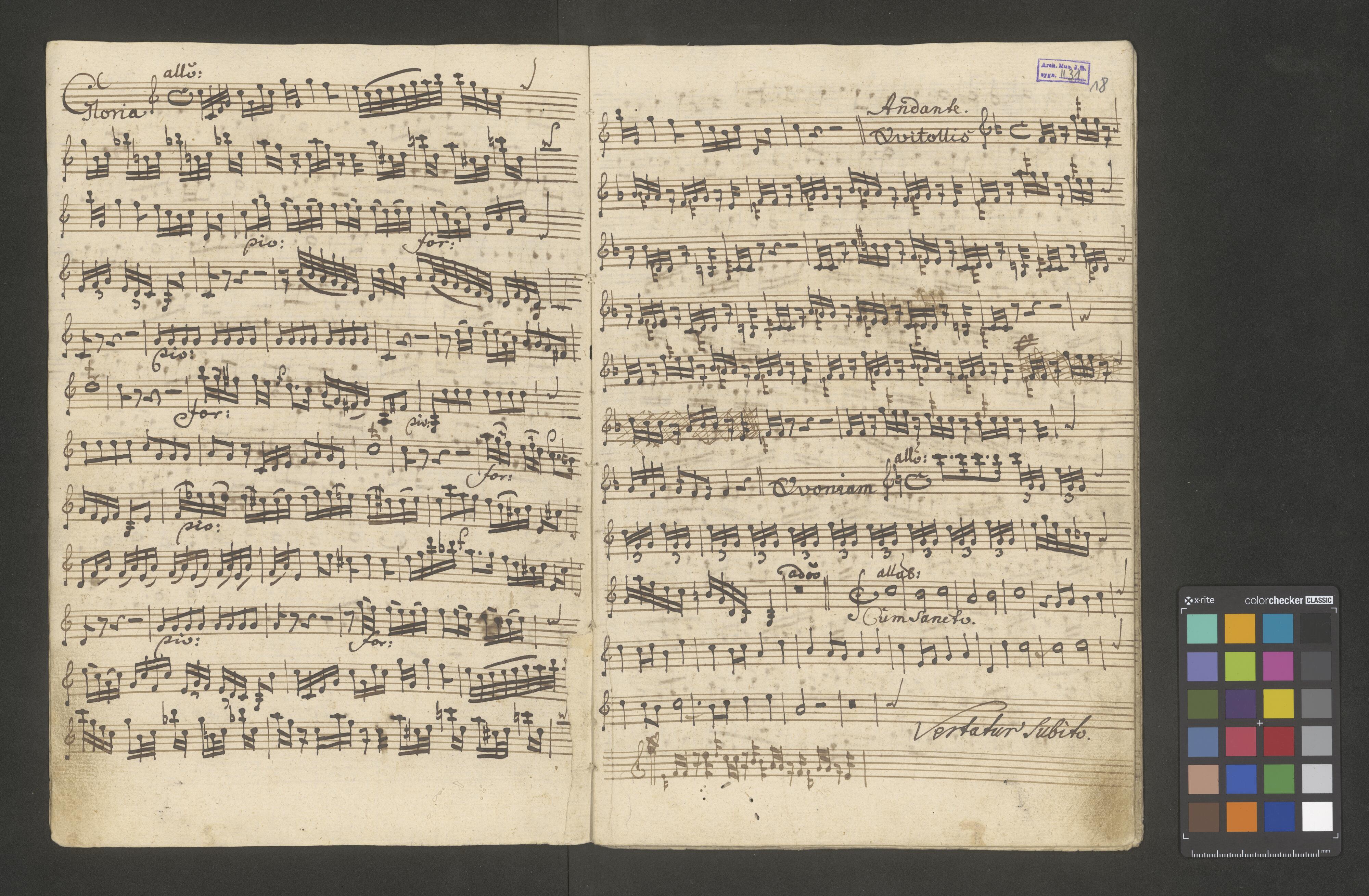 [dust cover title:] Missa Sctae Annae ex C | à | Canto Alto | Tenore Basso | Violino Primo | Violino Secondo | Clarino Primo | Clarino Secondo | con | Organo | et | Violone | Auth. Weigerth