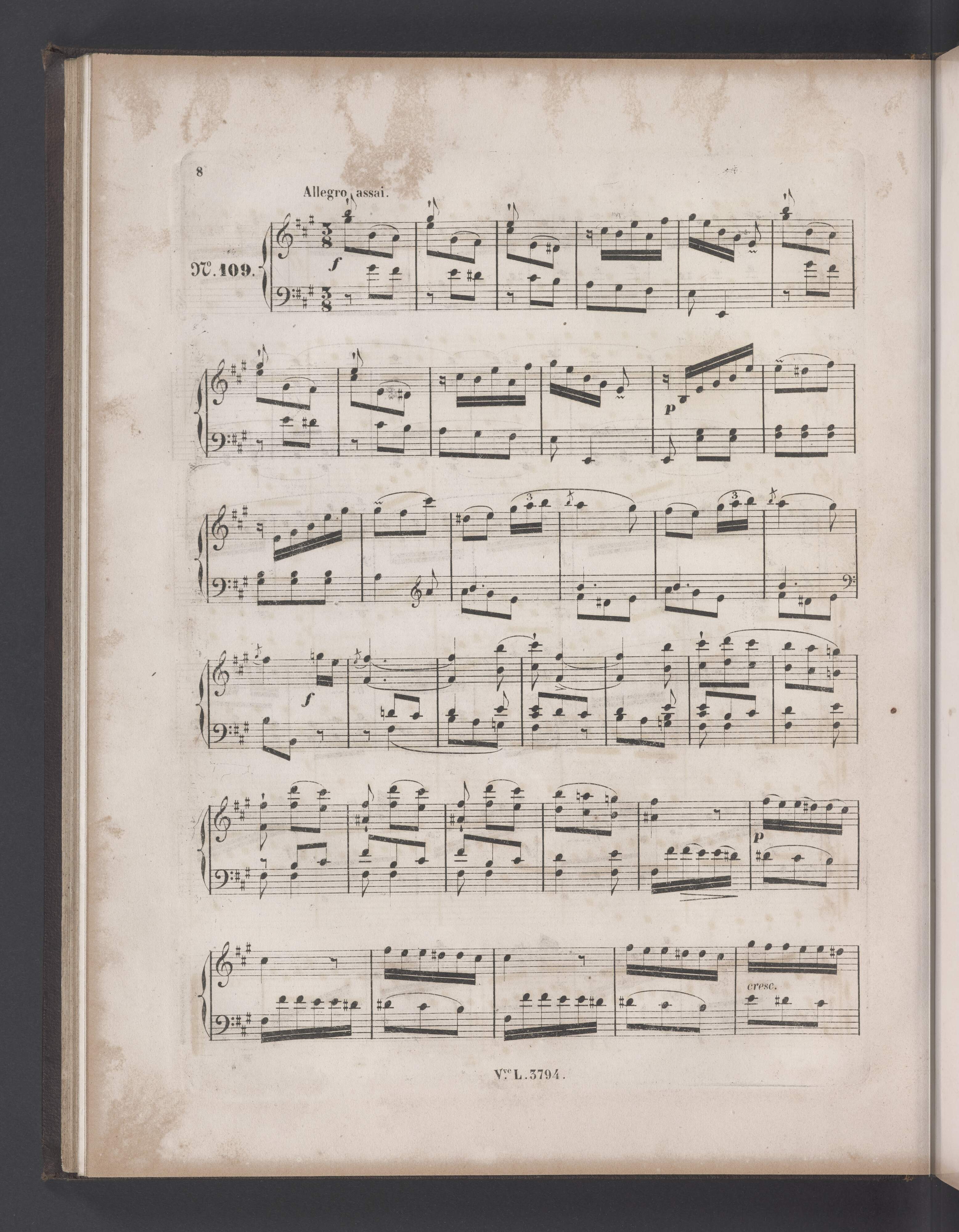 [title page:] Hommage de l'Editeur | aux Pianistes de France. | COLLECTION | COMPLETE | des OEUVRES de | DOMINIQUE SCARLATTI | POUR LE PIANO | Revues el doigtees | PAR | Ch. Czerny. | Cahier 9 [space] Prix: 10|f. | Paris, Maison LAUNER, E. GIROD, Suee|r. et Editeur. | des collections completes de tous les classiques du Piano. | Boulevard Montmartre. 16