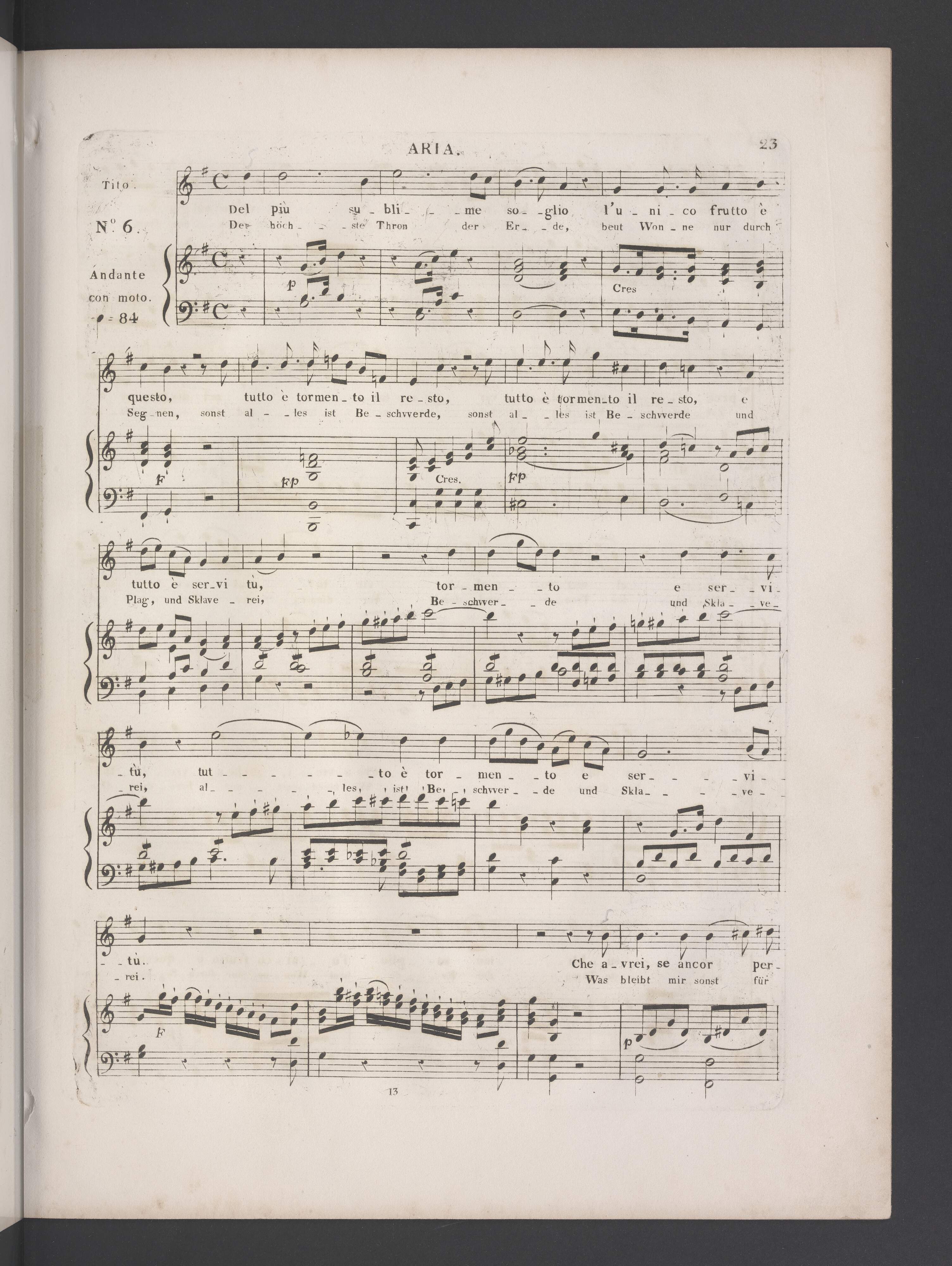 Collection complète des opéras de W. A. Mozart. 2|m|e livraison [= Umschlagtitel]. La clemenza di Tito. Opera seria in due atti, composte e ridotto per il cembalo da W: A: Mozart [Paris, M. Schlesinger]
