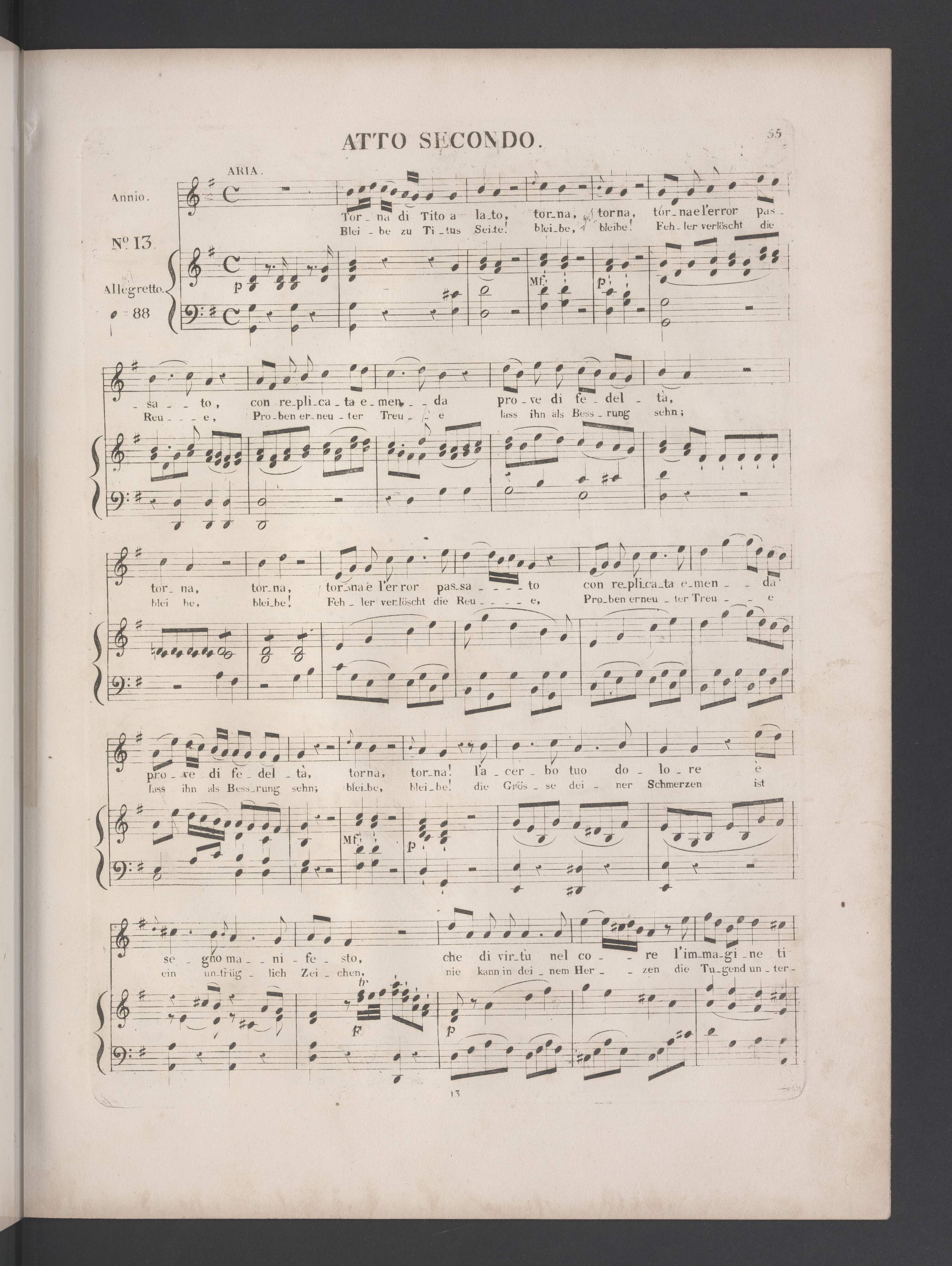 Collection complète des opéras de W. A. Mozart. 2|m|e livraison [= Umschlagtitel]. La clemenza di Tito. Opera seria in due atti, composte e ridotto per il cembalo da W: A: Mozart [Paris, M. Schlesinger]