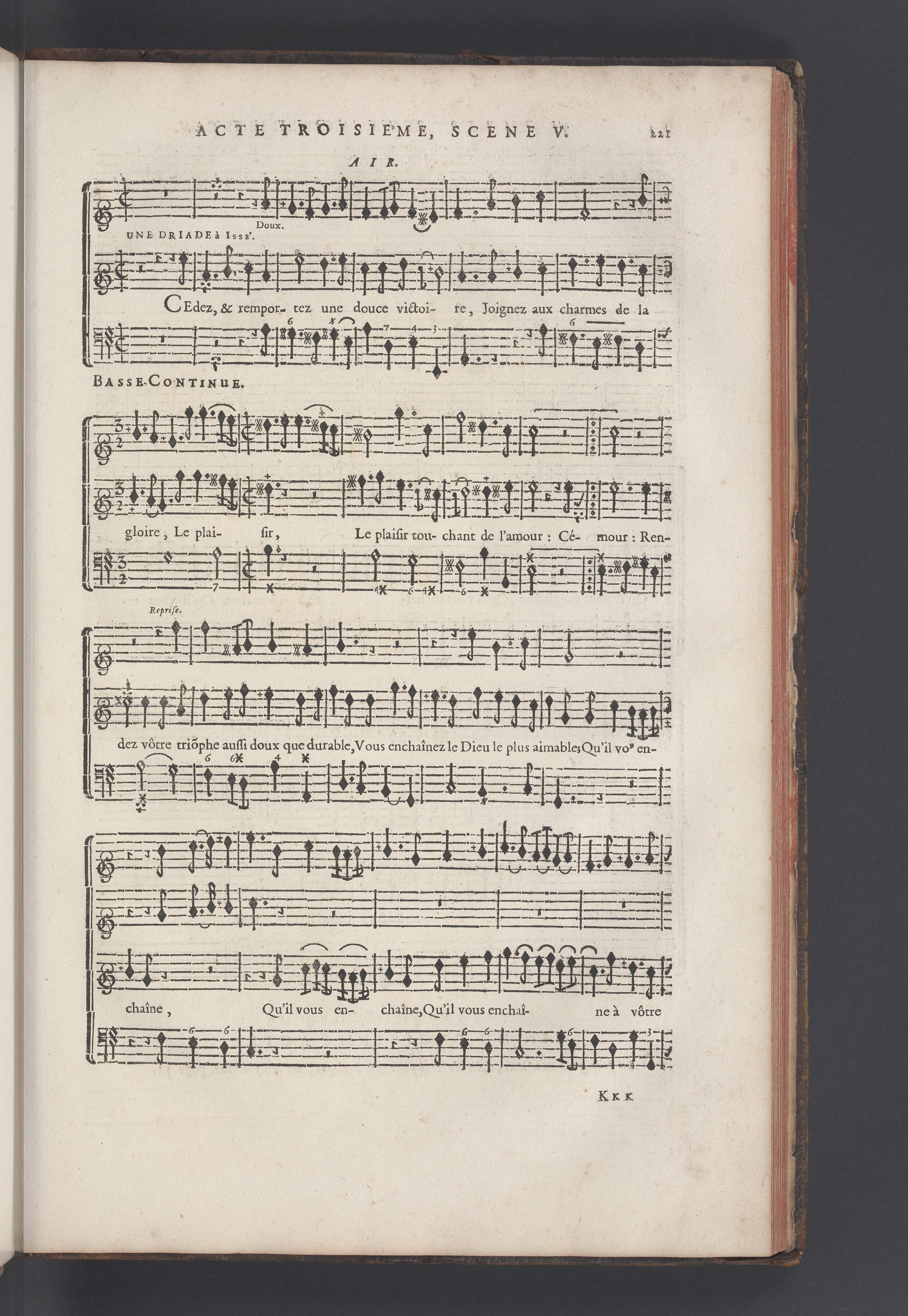 Issé pastorale héroïque représentée devant sa Majesté à Trianon, le 17. decembre 1697. Mise en musique par Monsieur Destouches, sur-intendant de la Musique du Roy, & inspecteur general de son Academie de musique. Partition générale. A Paris de l'imprimerie de Jean-Baptiste-Christophe Ballard, Seul Imprimeur du Roy pour la musique, & Noteur de la Chapelle de Sa Majesté, MDCCXXIV