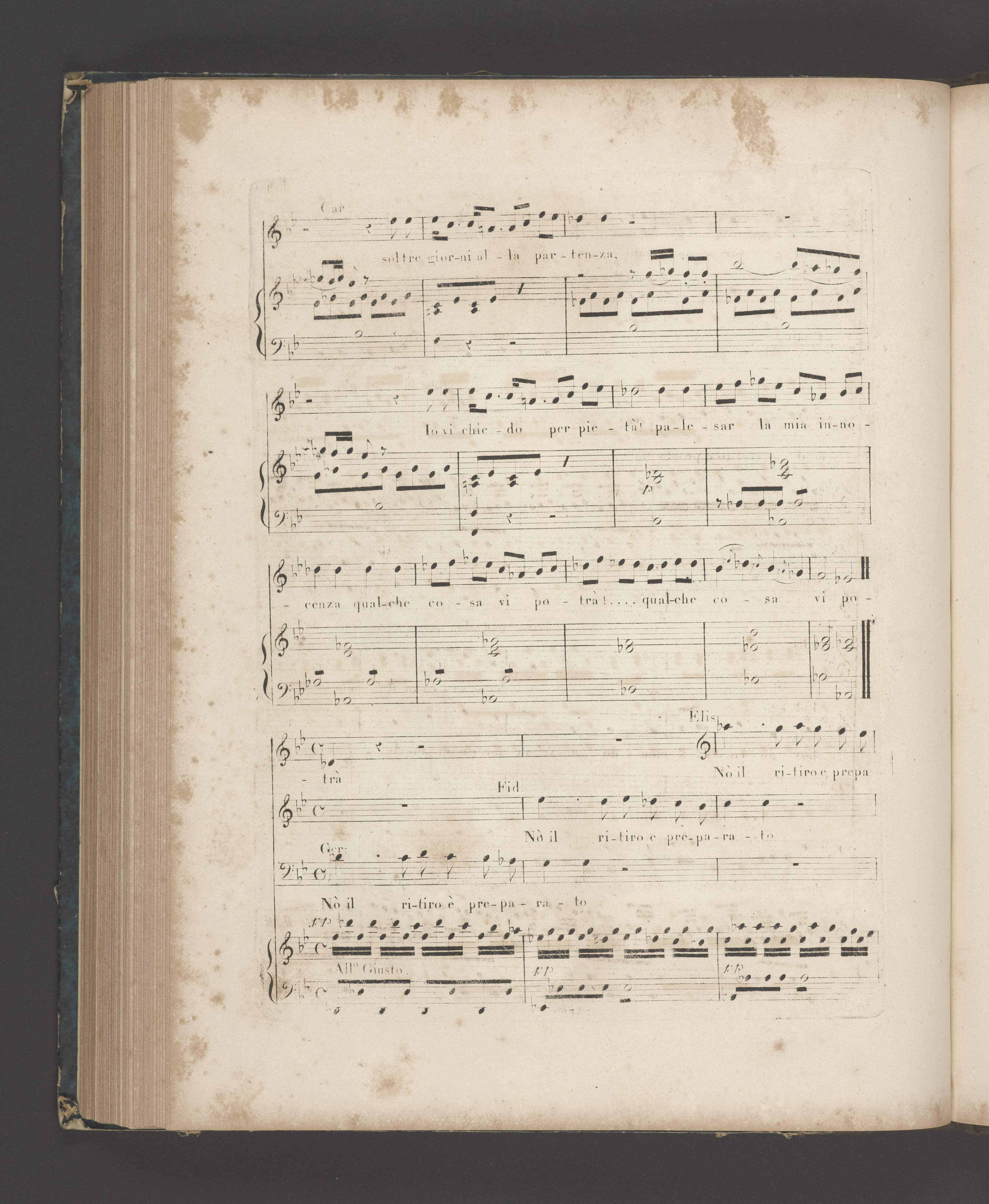 [caption title:] PARTIZIONE | del | MATRIMONIO SEGRETO | Opera Buffa | Musique de | CIMAROSA | Ridotta Per Piano-Forte | Prezzo: 36.|f | a Paris chez CARLI, Editeur M|d de Musique, Boulevard Montmartre N|o 14