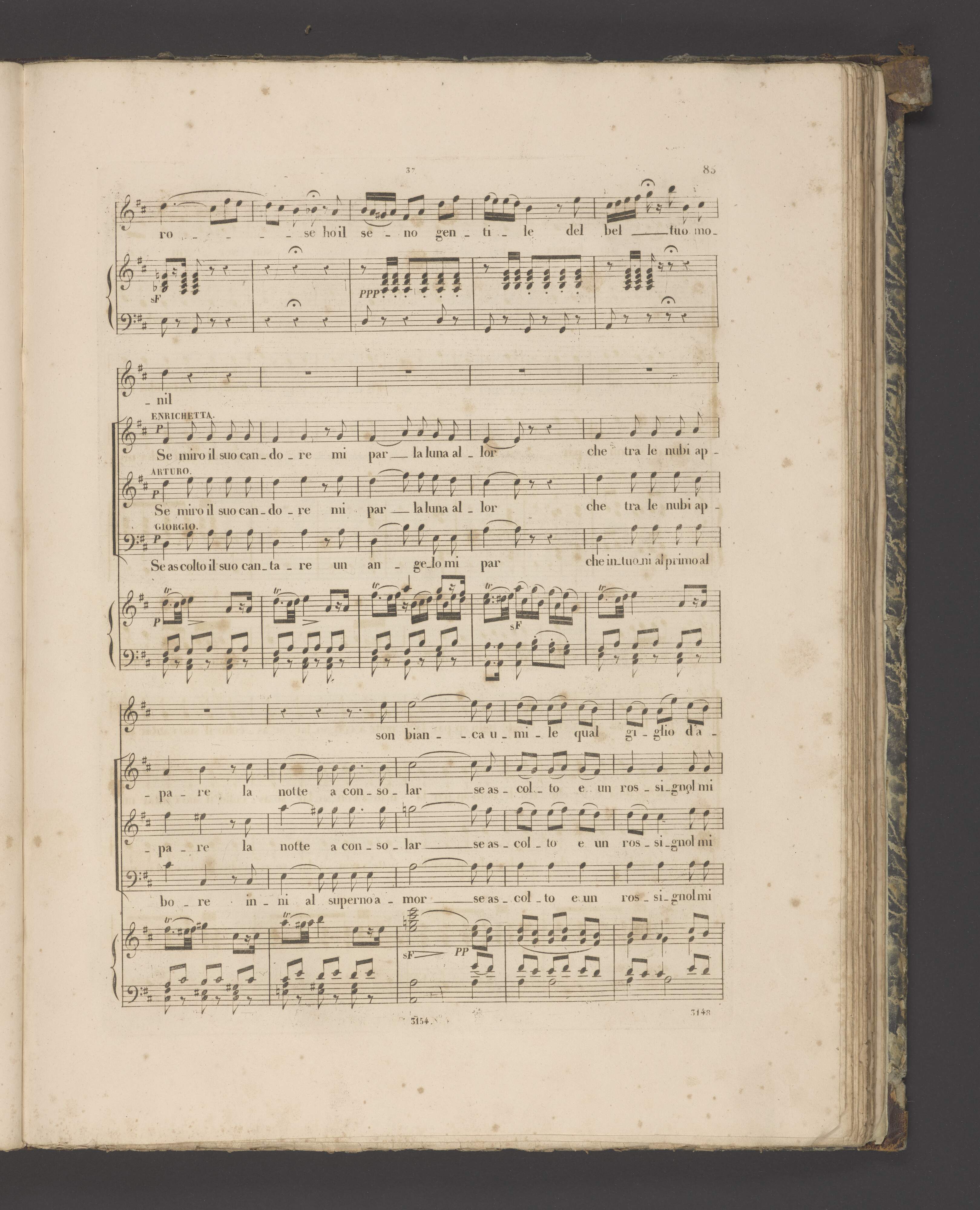 [cover title:] I. PURITANI. | OPERA SERIA IN TRE ATTI | DEL MAESTRO | BELLINI | N.|o 32 de la Collection. | Prix: 50 F.|s | Paris. | CHEZ PACINI, EDITEUR DE MUSIQUE | Boulevard des Italiens, N|o 11