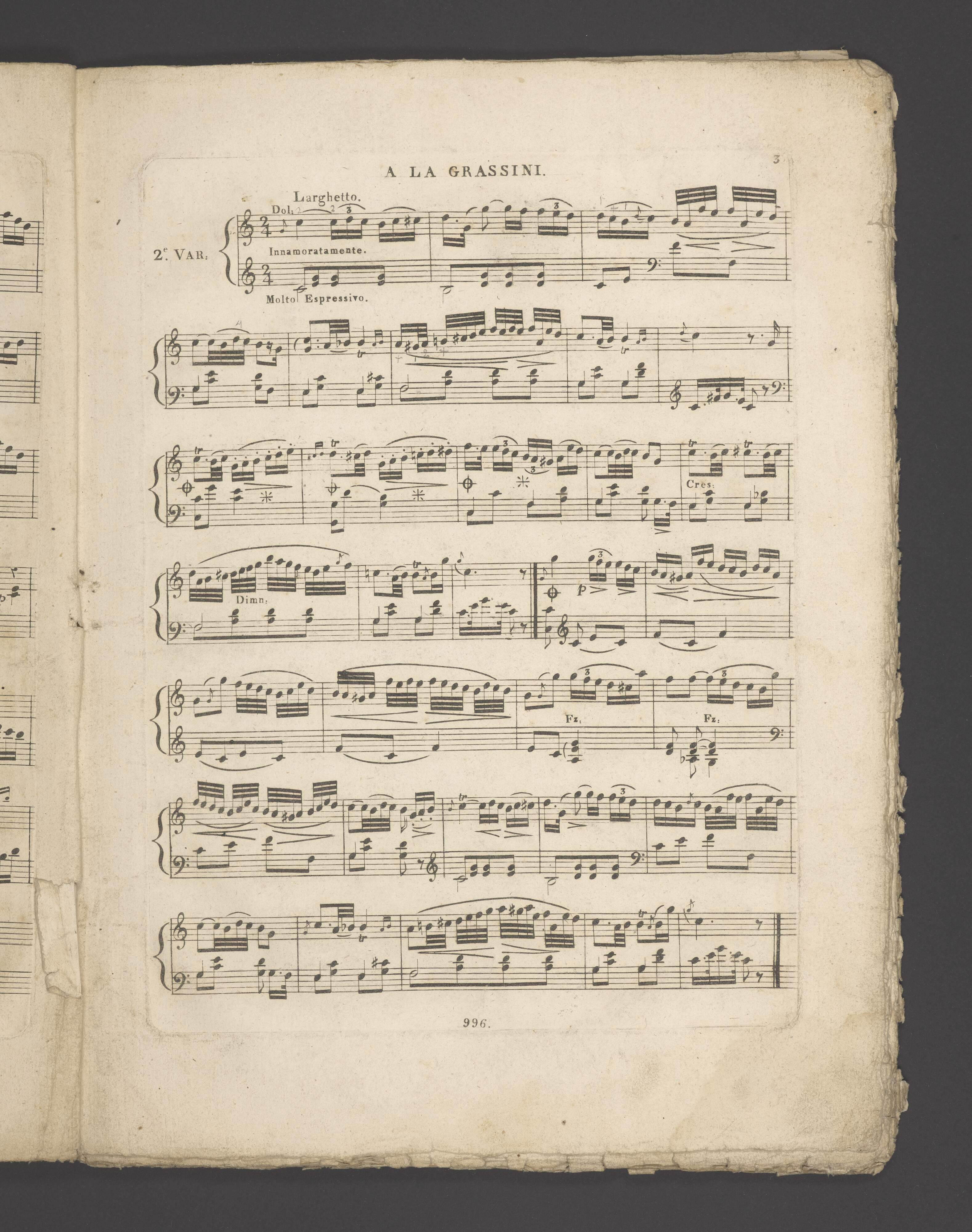 [title page:] LES IMITATIONS | Vingt-six Variations | sur l'Air Béarnais | Pour le Piano-Forte | avec Flûte Ad-Libitum | Dans le style de plusieurs Compositeurs Célébres | DÉDIÉES | à S. A. R. le Duc de Sussex | Par | T. LATOUR | Pianiste de S. A. R. le Prince Regent. | Prix 9.|f | A PARIS | Chez RICHAULT (Simon), Editeur de Musique, Rue Grange Bateliere, N|o 7. | M|r DE MOMIGNY, Boulevard Poissonniere, N|.o 20