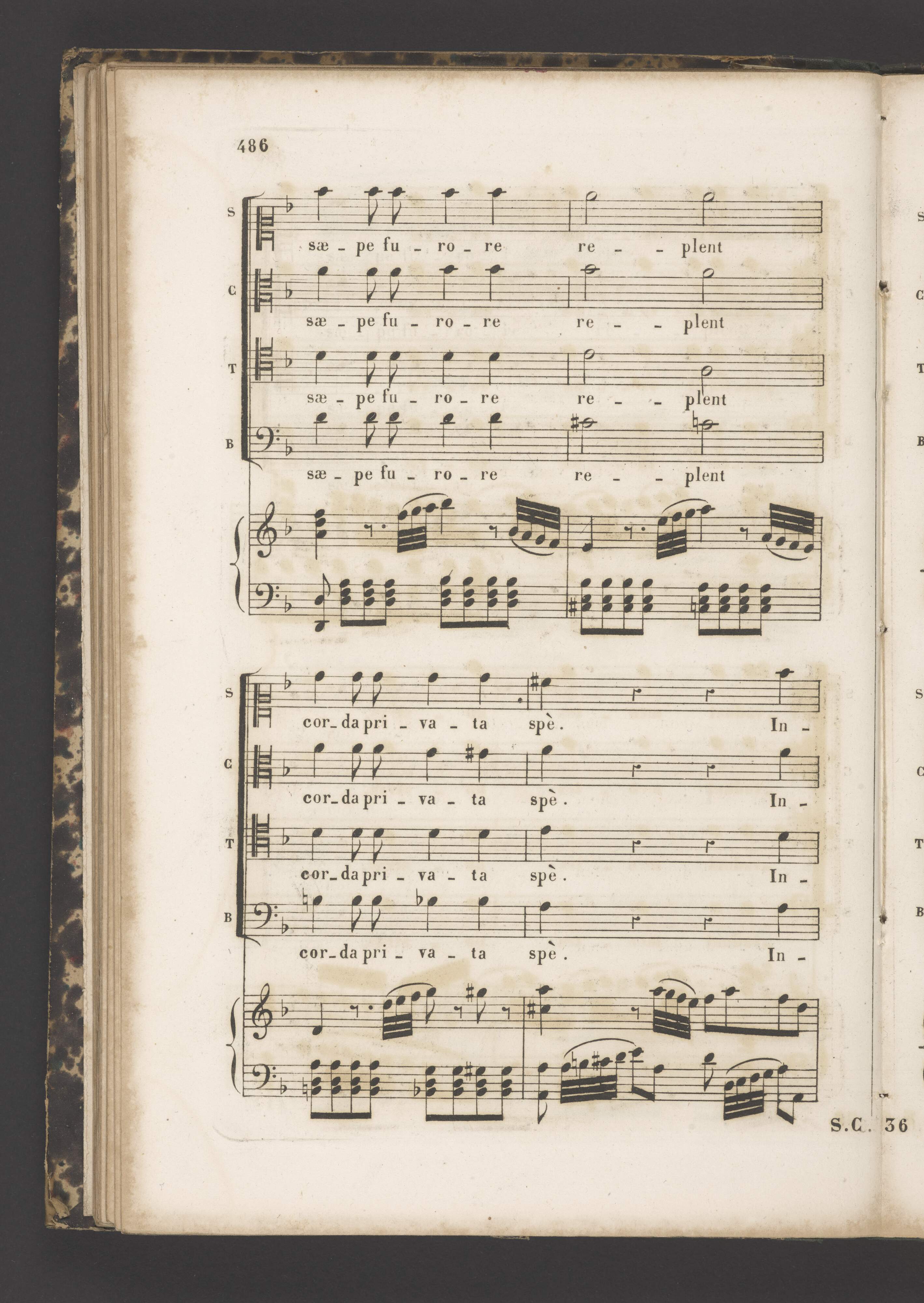 [cover title:] RECUEIL | DES | MORCEAUX DE MUSIQUE ANCIENNE, | Executés aux Concerts | de la Société de Musique | VOCALE RELIGIEUSE et CLASSIQUE, | FONDÉE A PARIS EN 1843. | SOUS LE PATRONAGE DE MESDAMES: | [list of patrons] | Et sous la Direction | de M|r LE PRINCE DE LA MOSKOWA. | Publié par la Société. | imp. Bertants [space] R. S|t Marc. 14 | Paris, chez Pacini Editeur des Œ|vres de la Société. | Boulevart des Italiens, N|o 11